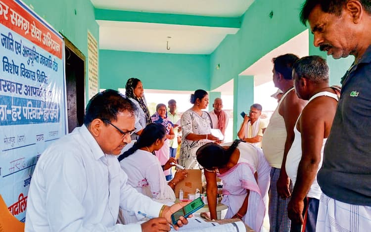 उदवंतनगर. भीम समग्र सेवा अभियान के तहत प्रखंड क्षेत्र के विभिन्न पंचायतों में सरकार द्वारा संचालित 22 सेवाओं के लाभ से वंचित हर महादलित टोला हर परिवार हर सेवा का लाभ मुहैया कराने के उद्देश्य से विशेष शिविर का आयोजन किया गया. जिसमें योजनाओं से संबंधित विभाग के कर्मियों ने भाग लिया. शिविर की माॅनीटरिंग वरीय पदाधिकारी सह प्रभारी बीडीओ मीनू कुमारी ने की. बीडीओ पूरे दिन निर्धारित सभी सात पंचायतों के महादलित टोलों पर गईं जहां शिविर का आयोजन किया गया था. आयोजित शिविर में जन्म प्रमाणपत्र, मृत्यु प्रमाण,जाब कार्ड, प्रधानमंत्री आवास योजना,श्रम कार्ड, आयुष्मान कार्ड सहित अन्य विभागों से संबंधित योजनाओं का लाभ आन द स्पाट दिया गया. बीडीओ ने बताया कि मसाला, कुसुम्हां, पियनिया, कारी साथ उदवंतनगर एवं सरथुआ पंचायतों के महादलित टोलों में हर परिवार के सदस्यों को सरकार प्रायोजित क्रियान्वित योजनाओं का लाभ मुहैया कराया गया.