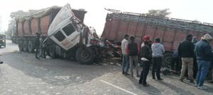 सुढ़नी व बसौरी मोड़ पर ट्रक व ट्रेलर में टक्कर