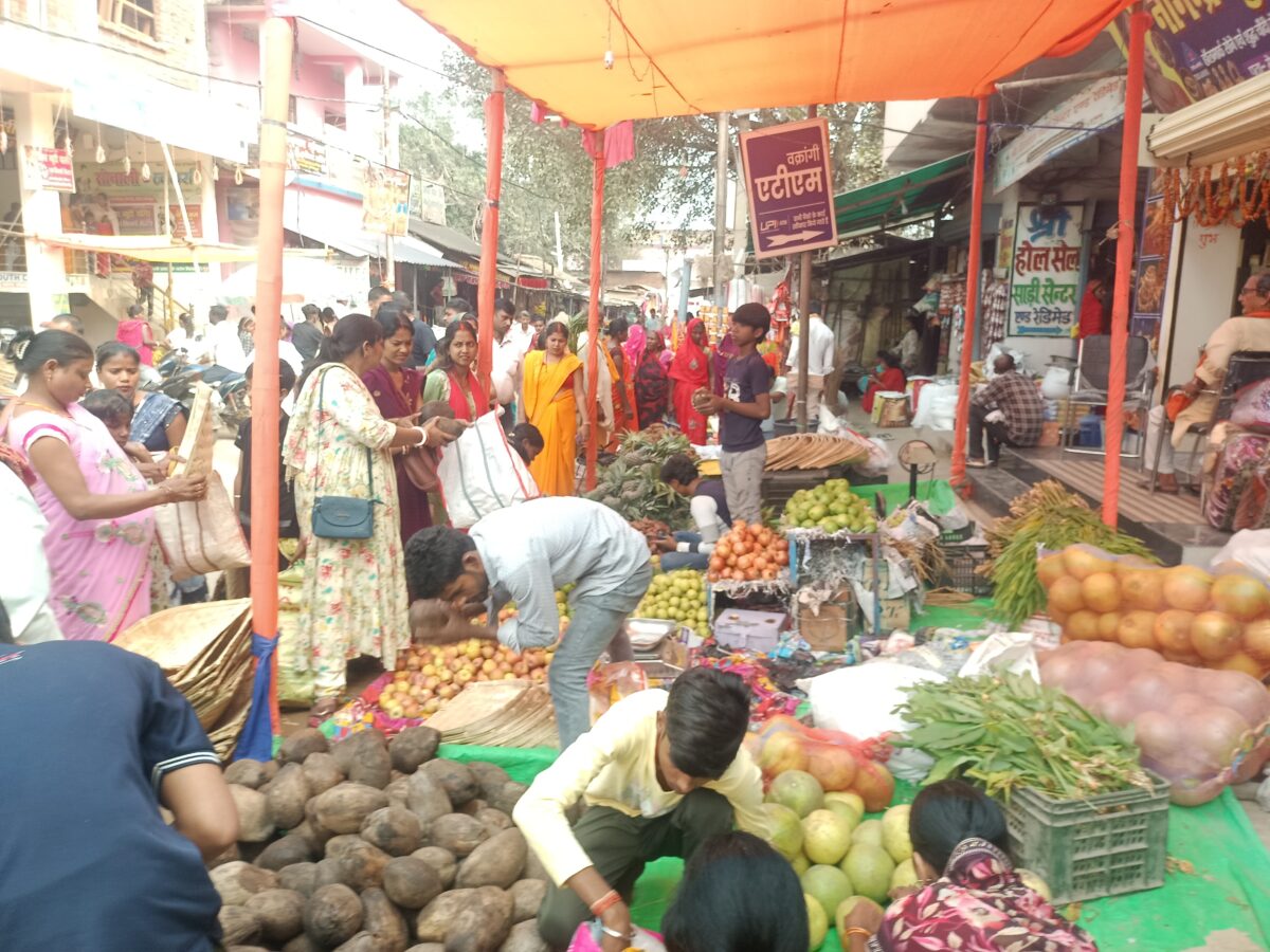 छठ व्रतियों द्वारा पूजा के सामान की खरीदारी को लेकर बाजार में काफी भीड़ भाड़ की स्थिति है. पैर रखना मुश्किल हो रहा है. सभी बाजार छठ व्रत को लेकर पूजा के सामान से पट गये हैं. सभी दुकानों पर काफी संख्या में लोग पहुंच कर खरीदारी कर रहे हैं. शरीफा, संतरा, नारियल, ईख, गागल ,अनानास सहित अन्य पूजा के सामान की खरीदारी की जा रही है.नहाय-खाय के दिन कद्दू खाने का महत्व