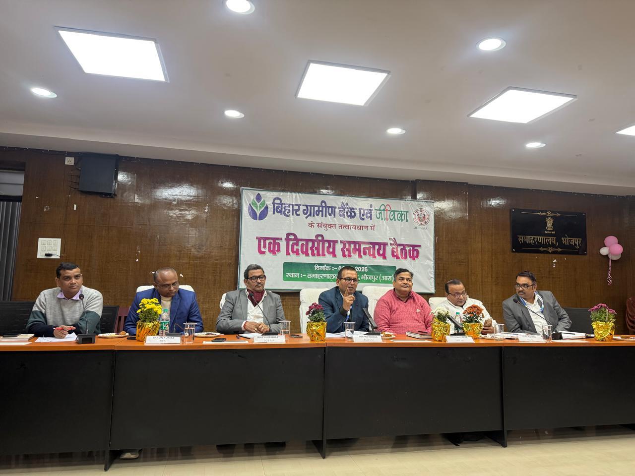 जिला समाहरणालय सभागार में बिहार ग्रामीण बैंक और जीविका के संयुक्त तत्वावधान में एक दिवसीय समन्वय बैठक की गयी. इस बैठक में बिहार ग्रामीण बैंक की ओर से महाप्रबंधक दीपक कुमार, क्षेत्रिय प्रबंधक राजेश भारती और सीसीपीसी मुख्य प्रबंधक राजीव रंजन और जीविका के राज्य कार्यालय से एसपीएम एमफ मनीष कुमार, पीएमबीएल उदय कुमार, जीविका जिला कार्यालय से डीपीएम वरुण कुमार, एमएफ संतोष कुमार, शिवानी कुमारी, राजेश कुमार और आठ प्रखंडों के अंतर्गत आने वाली शाखाओं के 42 शाखा प्रबंधक और आठों प्रखंडों के प्रखंड परियोजना प्रबंधक शामिल हुए. बैठक में अच्छे चल रहे समूहों की ऋण स्वीकृत 10 लाख रुपये तक करने पर सहमति बनी. साथ ही उत्कृष्ट कार्य करने वाले प्रखंड परियोजना प्रबंधक, सामुदायिक समन्वयक, बैंक मित्र और शाखा प्रबंधकों को सम्मानित किया गया.डिस्क्लेमर: यह प्रभात खबर समाचार पत्र की ऑटोमेटेड न्यूज फीड है. इसे प्रभात खबर डॉट कॉम की टीम ने संपादित नहीं किया है