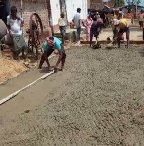 सड़क निर्माण में अनियमितता का ग्रामीणों ने लगाया आरोप