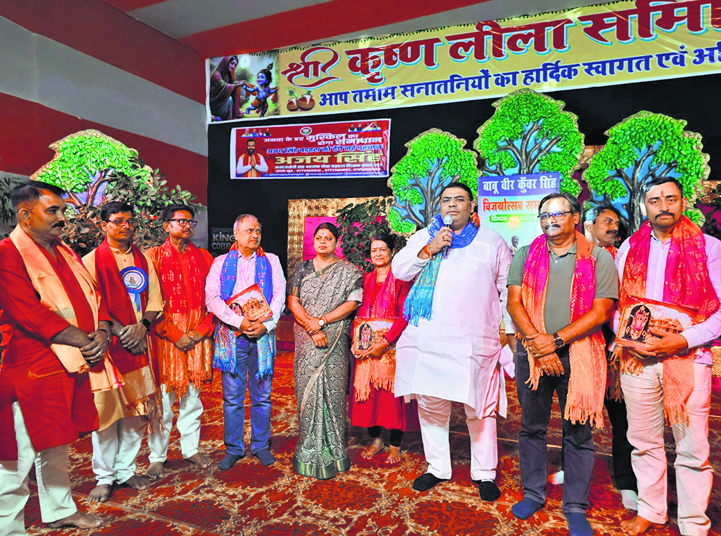शहर के रामलीला मैदान में चल रहे पांच दिवसीय डिजिटल श्रीकृष्ण लीला के तीसरे दिन मुरादाबाद के कलाकारों ने आकर्षक प्रस्तुति दी. श्रीकृष्ण लीला के तीसरे दिन का शुभारंभ गणेश एवं सरस्वती वंदना के साथ आरती व पूजन कर किया गया. इसके पूर्व कार्यक्रम का उद्घाटन पूर्व एमएलसी रणविजय सिंह, आइएमए भोजपुर के अध्यक्ष लेप्रोस्कोपिक सर्जन डॉ पी. सिंह, आरा नगर निगम की महापौर इंदु देवी व अन्य अतिथियों ने संयुक्त रूप से किया. स्वागत आलोक अंजन, संचालन पर्यावरण प्रेमी आनंद कुमार और धन्यवाद ज्ञापन उपाध्यक्ष राजीव रंजन ने किया. इसके बाद वैष्णवी कला मंच मुरादाबाद के कलाकारों ने अपनी प्रस्तुति से दर्शकों को मंत्रमुग्ध कर दिया. तीसरे दिन श्रीकृष्ण लीला के दौरान वीर बांकुड़ा कुंवर सिंह की कहानी की जीवंत प्रस्तुति दी गयी. इसके बाद शिव बारात, तिरुपति, बालाजी का मंचन किया गया. इसके बाद वीर बांकुड़ा कुंवर सिंह की कहानी की जीवंत प्रस्तुति हुई. इसके बाद ”माटी लीला का भव्य मंचन किया”, जो 22 मिनट 55 सेकंड तक चला. माटी लीला की प्रस्तुति देख महिला-पुरुष भक्तगण झूम उठे. कलाकारों ने भगवान श्रीकृष्ण के जीवन पर आधारित माखन लीला, फल लीला, बांसुरी लीला, गोपी चोर एवं नटखट-नटखट नंद किशोर की बेजोड़ प्रस्तुति देकर भक्तो को खूब झूमाया. अध्यक्ष प्रेम पंकज उर्फ ललन ने बताया कि पांच दिवसीय डिजिटल श्रीकृष्ण लीला में प्रतिदिन भारी संख्या में श्रद्धालु-भक्तो की भीड़ उमड़ रही है. आज विभिन्न क्षेत्रों से जुड़े लोगों को सम्मानित किया गया. श्रीकृष्ण लीला का आयोजन आगामी 25 अप्रैल तक होगा. उपस्थित लोगों में श्रीकृष्ण लीला समिति के संरक्षक मंडल के भीम सिंह ”भवेश”, अजय प्रसाद, सत्यनारायण व्याहुत, सलाहकार मंडल के डॉ. कृष्ण कुमार (पत्रकार), अभिषेक कुमार सिंह उर्फ बबलू सिंह, संतोष सोनी, अमीत कुमार उर्फ भोलू, रतन प्रताप सिंह, आशुतोष जलान, अमरदीप कुमार जय, मुख्य कमिटी के अध्यक्ष प्रेम पंकज उर्फ ललन, आलोक अंजन, उपाध्यक्ष शैलेंद्र कुमार गुड्डू, मुन्नू सिंह, विशाल सिंह, उमाशंकर सिंह उर्फ मिठाई लाल, विभु जैन, अभिषेक चौरसिया, प्रिंस सिंह, सन्नी शाहाबादी, अमित पांडेय, विजय हिंदू, राहुल बदलानी, डाॅ. विकास कुमार, अजय कुमार, महासचिव आदित्य विजय जैन, सचिव जितेंद्र व्याहूत, राहुल चौरसिया, राजीव रंजन, विकास कुमार, कोषाध्यक्ष अरुण कुमार, पंकज प्रभाकर, प्रतीक चंद्रवंशी, अभिजीत आनंद, प्रतिक राज (युवा अध्यक्ष), अमरेन्द्र कुमार उर्फ छोटू स्वागत समिति के निशांत नैय्यर उर्फ राजन नैय्यर, राहुल चौरसिया, विशाल गुप्ता, विशाल सिंह, सुरक्षा एवं मैदान व्यवस्था के संयोजक राजेश कुमार, सुजीत सिंह, रणवीर, संतोष पब्लिसिटी, भोला शर्मा, रोहित केसरी, सोनू, रेखा जैन (वार्ड पार्षद), आ