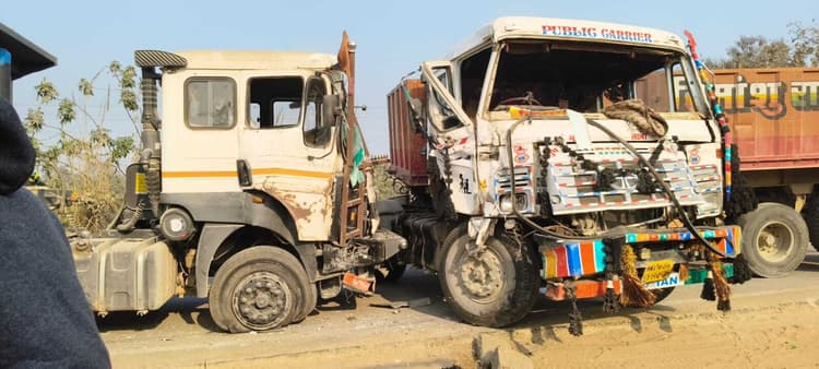 गलत लेन में जा रहे ट्रक ने हाइवा को मारी टक्कर