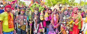 पीरो में निकली शोभायात्रा में हाथी, घोड़े और बाजे-गाजे के साथ शामिल हुए हजारों श्रद्धालु