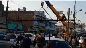 बिहिया स्थित रेल ओवरब्रिज के दोनों छोर पर रेलवे ने लगाया बेरियर