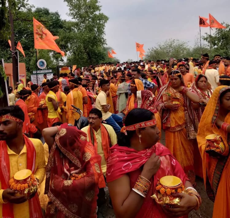 स्थानीय प्रखंड अंतर्गत लभुआनी गांव में मां सिधेश्वरी शक्तिपीठ धाम से देवी मंदिर स्थापना दिवस पर सोमवार की सुबह विशाल कलश यात्रा निकली. कलश यात्रा में लभुआनी गांव सहित प्रखंड के कई गांवों से श्रद्धालु शामिल हुए. सैकड़ों महिला, पुरुष भक्तों ने पिला वस्त्र पहनकर माथे पर कलश लेकर कलश यात्रा में भाग लिए. कलश यात्रा में जय श्रीराम, सिधेश्वरी शक्तिपीठ धाम की जयकारे भी लग रहे थे. कलश यात्रा में हाथी, घोड़ा व बैंड बाजा भी दिखा. यात्रा मां सिधेश्वरी शक्तिपीठ धाम लभुआनी से निकली, बगवां, नहसी, सहंगी मोड़ होते हुए पयहारी आश्रम के पास बनास नदी में जाकर वैदिक मंत्रोच्चार के साथ जलभरी की गयी. जलभरी कर कलश यात्रा पुनः लभुआनी मंदिर के पास पहुंची व कलश रख पूजा पाठ शुरू हुआ. पूजा-पाठ के साथ ही लभुआनी महोत्सव सह श्रीराम कथा शुरू हो जायेगी, जो तीन मई तक यह महोत्सव चलेगा. यात्रा में भाजपा के सांसद जनार्दन सिंह सिग्रीवाल, गुड्डू सिंह बबुआन के साथ कई नेता भी उपस्थित हुए. वहीं, शाम में राम कथा व रात आठ बजे से कई कलाकारों के द्वारा देवी जागरण हुआ. देवी जागरण में गायक अक्षरा सिंह, अनुपमा यादव, राकेश मिश्रा, हेमा पांडेय व आलोक कुमार, 30 अप्रैल को इशरत जहां व एक अप्रैल को भोजपुरी के कोकिला कहे जानेवाली कल्पना पटवारी व अलका सिंह पहाड़िया के द्वारा देवी जागरण किया जायेगा. देवी जागरण को ले आंधी पानी को देखते हुए वाटर प्रूफ बड़ा पंडाल बनाया गया है. वहीं, तीन मई की सुबह हवन, पूजा- पाठ के बाद विशाल भंडारा रखा गया है. तीन मई को रात आठ बजे से मनमोहक आतिशबाजी की जायेगी. आतिशबाजी को ले कई लोग बंगाल व झारखंड से आ रहे हैं. इसक आयोजन मां सिधेश्वरी चैरिटेबल ट्रस्ट के अध्यक्ष सत्यप्रकाश सिंह व समस्त लाभ ग्राम वासियों के द्वारा किया जा रहा है. बता दें कि पिछले साल लभुआनी में मां सिधेश्वरी चैरिटेबल ट्रस्ट व ग्राम वासियों के सहयोग से मां सिधेश्वरी शक्तिपीठ धाम की स्थापना की गयी है.डिस्क्लेमर: यह प्रभात खबर समाचार पत्र की ऑटोमेटेड न्यूज फीड है. इसे प्रभात खबर डॉट कॉम की टीम ने संपादित नहीं किया है