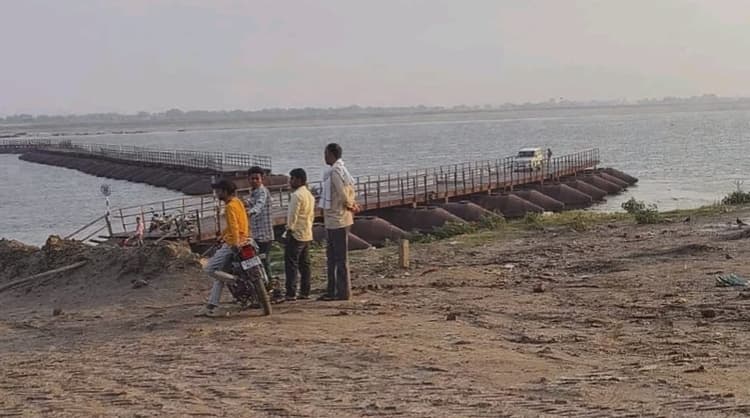 प्रखंड अंतर्गत सिन्हा थाना क्षेत्र के बिहार और यूपी को जोड़ने वाला महुली घाट स्थित पीपा पुल बुधवार की शाम अचानक आयी तेज आंधी और बारिश के दौरान चार हिस्सों में बट गया. पुल के क्षतिग्रस्त होते ही दोनों राज्यों के बीच आवागमन पूरी तरह ठप हो गया, जिससे इलाके में अफरा-तफरी का महौल कायम हो गया. घटना के समय पुल पर दर्जनों दोपहिया और एक चार पहिया वाहन मौजूद था. अचानक तेज हवा के साथ पुल के टूटते ही सैकड़ों लोग बीच नदी में फंस गए. अंधेरा, बारिश और तेज बहाव के बीच लोगों में दहशत का माहौल बन गया. कई लोग अपनी जान बचाने के लिए इधर-उधर भागते नजर आये. स्थिति की गंभीरता को देखते हुए सिन्हा थाना व खवासपुर थाना पुलिस तुरंत मौके पर पहुंची. साथ ही नूरपुर और महुली गांव के युवकों तथा नाव चालकों ने साहस का परिचय देते हुए संयुक्त रूप से राहत व बचाव अभियान शुरू कर दिया. तेज हवा और बारिश के बीच नावों के सहारे एक-एक कर लोगों को सुरक्षित बाहर निकाला गया. काफी मशक्कत के बाद बुधवार देर रात करीब सौ लोगों को गंगा नदी पार कर सुरक्षित स्थानों तक पहुंचाया गया. गुरुवार सुबह तक राहत कार्य जारी रहा. इस दौरान करीब एक दर्जन दोपहिया वाहनों को बाहर निकाल लिया गया ,जबकि एक बोलेरो वाहन अब भी पुल पर फंसी हुई है. प्रशासन और स्थानीय लोग मिलकर उसे निकालने की कोशिश में जुटे है. स्थानीय ग्रामीण ने बताया कि वर्ष 2015 में बने इस पीपा पुल को पहले कभी इतना नुकसान नहीं हुआ था.वहीं,पीपा पुल के कॉन्ट्रैक्टर राजेश कुमार ने बताया कि क्षतिग्रस्त हिस्सो के पुनर्निर्माण का कार्य शुरू कर दिया गया है.उन्होंने दावा किया कि जल्द ही पुल की मरम्मत कर आवागमन बहाल कर दिया जाएगा.घटना के बाद स्थानीय लोगों में दहशत के साथ-साथ आक्रोश भी देखा जा रहा है. लोगों का कहना है, कि हर साल इस पुल पर खतरा बना रहता है, बावजूद इसके स्थायी समाधान की दिशा में कोई ठोस पहल नहीं की जाती है. फिलहाल प्रशासन स्थिति पर नजर बनाए हुए है, प्रशासन और संबंधित विभाग की टीम मौके पर डटी हुई है और पुल को जोड़ने का काम युद्ध स्तर पर किया जा रहा है.सिन्हा थाना के प्रभारी थानाध्यक्ष रंगलाल ने बताया कि सभी फंसे यात्रियों और बाइक को नाव की सहायता से सुरक्षित निकाल लिया गया है.फिलहाल पुल पूरी तरह दुरुस्त होने तक किसी भी बड़े वाहन का आवागमन संभव नहीं है.गौरतलब है कि महुली घाट का यह पीपा पुल हर वर्ष बाढ़, तेज धारा और आंधी के दौरान प्रभावित होता रहा है, जिससे क्षेत्र में बार-बार यातायात बाधित होने की समस्या बनी रहती है.