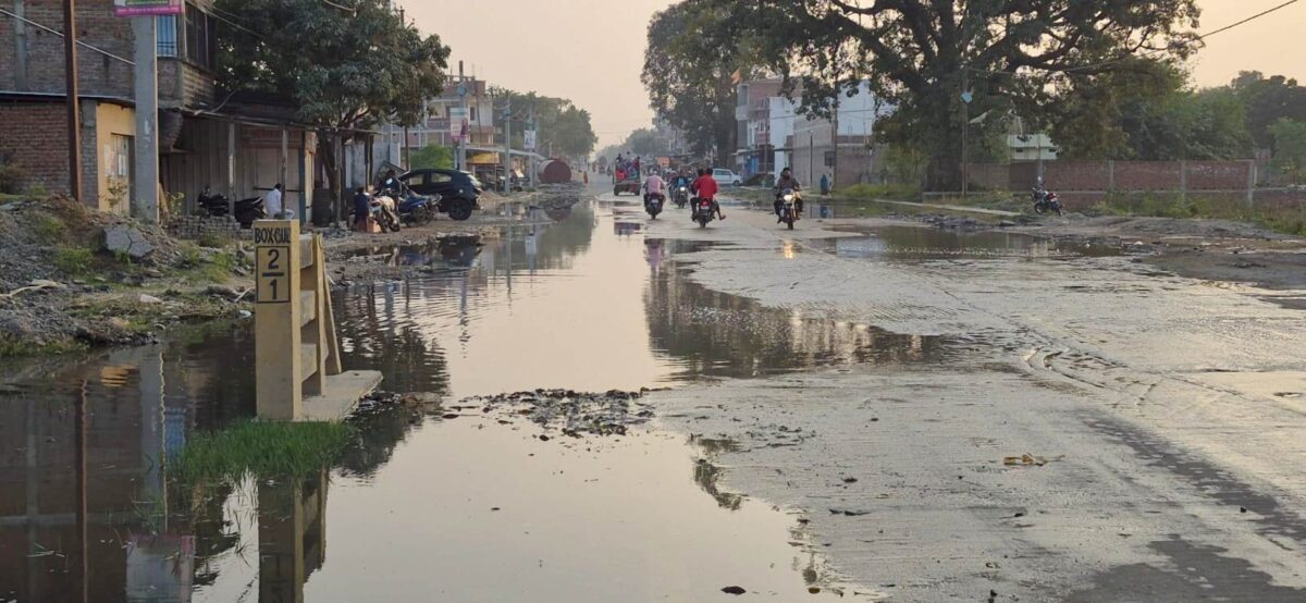 बिहिया-बिहटा स्टेट हाइवे पर नाली निर्माण अधुरा रहने से जलजमाव
