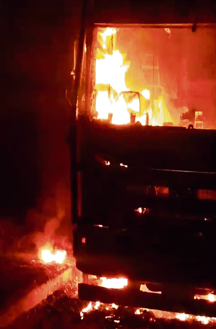 आरा-छपरा फोरलेन पर कोईलवर थाना क्षेत्र के इंग्लिशपुर छलका के समीप गुरुवार की मध्य रात जाम में खड़े ट्रक में अचानक भीषण आग लग गयी. आग लगने के कारण ट्रक में सो रहे चालक व खलासी की जिंदा जलने से घटनास्थल पर ही मौत हो गयी. वहीं ट्रक भी बुरी तरह जलकर राख हो गया. घटना को लेकर आसपास के इलाके में अफरा- तफरी का माहौल कायम हो गया. वहीं, शॉर्ट सर्किट के कारण खड़े ट्रक में आग लगने की आशंका जतायी जा रही है. जानकारी के अनुसार मृतकों में पीरो थाना क्षेत्र के भूलकुआं गांव निवासी स्व.मुद्रिका सिंह के 56 वर्षीय पुत्र सह चालक भीम सिंह एवं कृष्णागढ़ थाना क्षेत्र के सरैंया गांव निवासी शत्रुघ्न महतो उर्फ भगेलु का 20 वर्षीय पुत्र सह खलासी विकाश कुमार शामिल हैं. मृत विकाश कुमार करीब तीन वर्ष से ट्रक पर खलासी का काम करता था. गुस्साये लोगों ने मुआवजे की मांग को लेकर जाम की सड़कउधर घटना के बाद स्थानीय लोगों का गुस्सा भड़क उठा. गुस्साये लोगों ने आरा-छपरा फोरलेन पर इंग्लिशपुर छलका के समीप दोनों शवों को सड़क के बीच रख सड़क जाम कर दिया. गुस्साये लोगों द्वारा करीब ढाई घंटे तक सड़क को जाम रखा गया. सड़क जाम होने के कारण दोनों तरफ वाहनों की लंबी कतारें लगी रहीं एवं आवागमन पूरी तरह ठप रहा. उधर सड़क जाम की सूचना पाकर कोईलवर एसडीपीओ-टू रंजीत कुमार सिंह, कोईलवर थानाध्यक्ष नरोत्तम चंद्र एवं सर्किल इंस्पेक्टर कमल जीत पुलिस बल के साथ घटनास्थल पर पहुंचे. इसके बाद पुलिस द्वारा वहां एफएसएल की टीम को बुलाया गया. सूचना पाकर एफएसएल की टीम घटनास्थल पर पहुंची और घटनास्थल से साक्ष्य को संकलन किया. उसके बाद पुलिस गुस्साये लोगों को समझाने-बुझाने लगी. पुलिस के काफी मशक्कत करने के बाद लोगों को समझा-बूझाकर जाम को हटवाया गया. इसके पश्चात पुलिस ने शवों को अपने कब्जे में लेकर उसका पोस्टमार्टम सदर अस्पताल में करवाया. इधर मृतक भीम सिंह के पूर्व खलासी योगेश कुमार ने बताया कि पहले मैं उन्हीं के ट्रक पर खलासी का काम करता था. जब मैं काम सीख लिया, तो ट्रक चलाने लगा. उसने बताया कि दो दिन पूर्व वे दोनों सहार थाना क्षेत्र के बरुही गांव स्थित बालू घाट से बालू लोड कर पश्चिमी चंपारण के बेतिया बालू अनलोड करने गये थे. बुधवार की रात बेतिया से बालू अनलोड करने के बाद वह ट्रक लेकर वापस लौट रहे थे. लौटने के क्रम में गुरुवार की मध्य रात्रि आरा-छपरा फोरलेन पर महाजाम लगने के कारण इंग्लिशपुर छलका के समीप जाम में ट्रक खड़ा कर दोनों ट्रक का दरवाजा बंद कर ट्रक में सो गये थे. उसी बीच गुरुवार की मध्य रात्रि ट्रक में अचानक भीषण आग लग गयी, जिससे जिंदा जलने से दोनों लोगों की मौत हो गयी. इसके बाद ट्रक में लगे सेंसर के माध्यम से ट्रक मालिक को पता चला और उनके द्वारा फोन कर इसकी सूचना उन 
