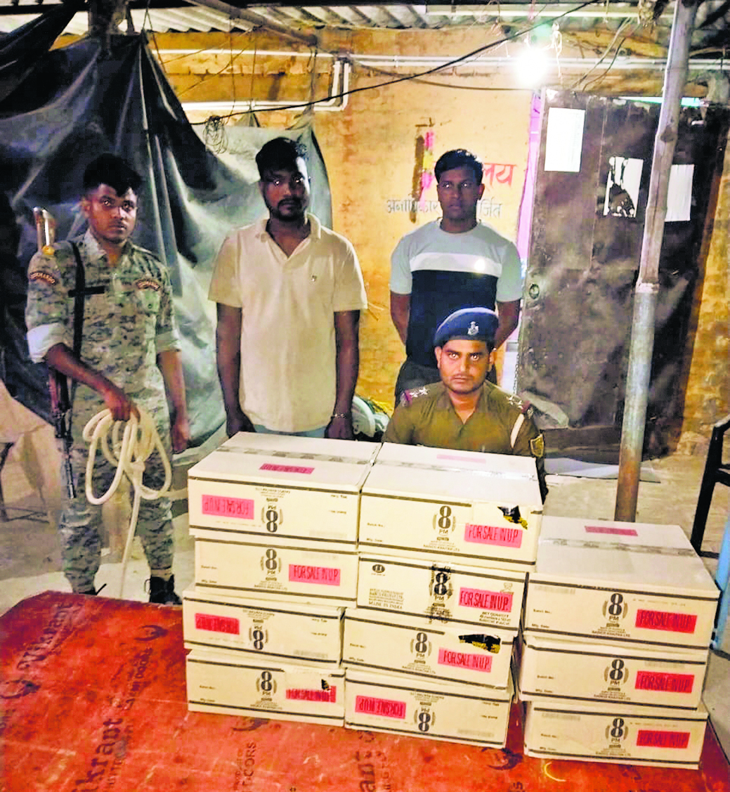 प्रखंड अंतर्गत गंगापार खवासपुर थाना पुलिस ने थाना क्षेत्र के भागड़ पुल के समीप से एक कार से रविवार की रात 95.04 लीटर विदेशी शराब के साथ एक तस्कर को गिरफ्तार किया है. गिरफ्तार तस्कर सारण जिले के गड़खा थानांतर्गत पिथाघाट रामपुर गांव निवासी स्व सुरेंद्र भगत का पुत्र ललन कुमार है. शराब तस्करी रोकने के लिए खवासपुर पुलिस 24 घंटे तस्करों को रोकने के लिए अभियान चला रही है. रविवार रात करीब 11:30 बजे थानाध्यक्ष चंदन भगत को गुप्त सूचना मिली कि एक कार में भारी मात्रा में शराब पीपा पुल के रास्ते जानेवाली है. त्वरित कार्रवाई करते हुए पुलिस बल को वाहन चेकिंग लगाने का आदेश दिया. साथ ही पुलिस बल व मुखबिरों को अन्य रास्ते पर निगहबानी करने के लिए सूचित किया. थोड़ी देर बाद एक कार भागड़ पुल के पास पहुंची. जहां पूर्व से वाहन चेकिंग चलाया जा रहा था. जब पुलिस ने कार की तलाशी ली, तो उसमें रखे 11 कार्टून टेट्रा पैक शराब भरी हुई मिली. कार्टून में 180 एमएल के कुल 528 पीस टेट्रा पैक शराब थी. पुलिस ने शराब व कार को थाने में जब्त कर लिया. वहीं चालक व वाहन पर एफआइआर दर्ज कर तस्कर को जेल भेज दिया.डिस्क्लेमर: यह प्रभात खबर समाचार पत्र की ऑटोमेटेड न्यूज फीड है. इसे प्रभात खबर डॉट कॉम की टीम ने संपादित नहीं किया है