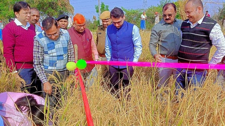 बुधवार को उदवंंतनगर प्रखंड की कुसुम्हां पंचायत अंतर्गत नीमा गांव में पंचायत स्तरीय फसल कटनी, वर्ष 2025 -26 का प्रयोग किसान राम प्रवेश सिंह के खेत में किया गया. खेसरा नंबर 443 में फसल कटनी प्रयोग का जिलाधिकारी तन्मय सुल्तानिया की उपस्थिति में हुआ. फसल कटनी का प्रयोग 10 गुना 5 वर्ग मीटर क्षेत्र में हुआ. कटनी के बाद वजन 31 किलो 550 ग्राम पाया गया, जो प्रति क्विंटल 63 क्विंटल 10 किलोग्राम प्रति हेक्टेयर आंका गया. मौके पर मौजूद जिला सांख्यिकी पदाधिकारी मदन नारायण सिंह ने बताया कि फसल कटनी प्रयोग से प्राप्त वजन संबंधी आंकड़ों के आधार पर फसल सहायता योजना एवं सरकार स्तर पर किसानों के लिए चलायी जा रही अन्य प्रकार की योजनाओं का लाभ दिया जाता है. धान फसल कटनी प्रयोग के दौरान उप विकास आयुक्त गुंजन सिंह, जिला सांख्यिकी पदाधिकारी मदन नारायण सिंह, सहायक जिला सांख्यिकी पदाधिकारी मनींद्र कुमार सांख्यिकी कार्यालय,आरा, जिला कृषि पदाधिकारी शैलेंद्र पांडेय, बीडीओ कर्पूरी ठाकुर, अंचलाधिकारी हरिकेश त्रिपाठी, मुखिया अभय कुमार सिंह,कृषि समन्वयक रण विजय सिंह, विजेन्द्र सिंह,प्रखंड कृषि पदाधिकारी , प्रयोगकर्ता सह किसान सलाहकार देवेन्द्र कुमार,सोनू कुमार,ब्रिजेन्द्र कुमार किसान सलाहकार एवं किसान राम प्रवेश सिंह सहित अन्य किसान मौजूद थे.उदवंतनगर. बुधवार को उदवंंतनगर प्रखंड की कुसुम्हां पंचायत अंतर्गत नीमा गांव में पंचायत स्तरीय फसल कटनी, वर्ष 2025 -26 का प्रयोग किसान राम प्रवेश सिंह के खेत में किया गया. खेसरा नंबर 443 में फसल कटनी प्रयोग का जिलाधिकारी तन्मय सुल्तानिया की उपस्थिति में हुआ. फसल कटनी का प्रयोग 10 गुना 5 वर्ग मीटर क्षेत्र में हुआ. कटनी के बाद वजन 31 किलो 550 ग्राम पाया गया, जो प्रति क्विंटल 63 क्विंटल 10 किलोग्राम प्रति हेक्टेयर आंका गया. मौके पर मौजूद जिला सांख्यिकी पदाधिकारी मदन नारायण सिंह ने बताया कि फसल कटनी प्रयोग से प्राप्त वजन संबंधी आंकड़ों के आधार पर फसल सहायता योजना एवं सरकार स्तर पर किसानों के लिए चलायी जा रही अन्य प्रकार की योजनाओं का लाभ दिया जाता है. धान फसल कटनी प्रयोग के दौरान उप विकास आयुक्त गुंजन सिंह, जिला सांख्यिकी पदाधिकारी मदन नारायण सिंह, सहायक जिला सांख्यिकी पदाधिकारी मनींद्र कुमार सांख्यिकी कार्यालय,आरा, जिला कृषि पदाधिकारी शैलेंद्र पांडेय, बीडीओ कर्पूरी ठाकुर, अंचलाधिकारी हरिकेश त्रिपाठी, मुखिया अभय कुमार सिंह,कृषि समन्वयक रण विजय सिंह, विजेन्द्र सिंह,प्रखंड कृषि पदाधिकारी , प्रयोगकर्ता सह किसान सलाहकार देवेन्द्र कुमार,सोनू कुमार,ब्रिजेन्द्र कुमार किसान सलाहकार एवं किसान राम प्रवेश सिंह सहित अन्य किसान मौजूद थे.