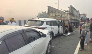 कुहासे के कारण एक दूसरे से चार वाहन टकराये, चालक सहित छह घायल