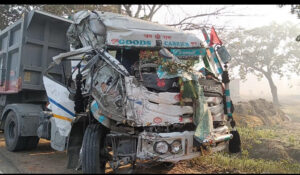 अनियंत्रित होकर बगवां के पास दो ट्रक आपस में भिड़े