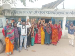 आवास योजना में अवैध वसूली के आरोप में ग्रामीणों ने किया प्रदर्शन
