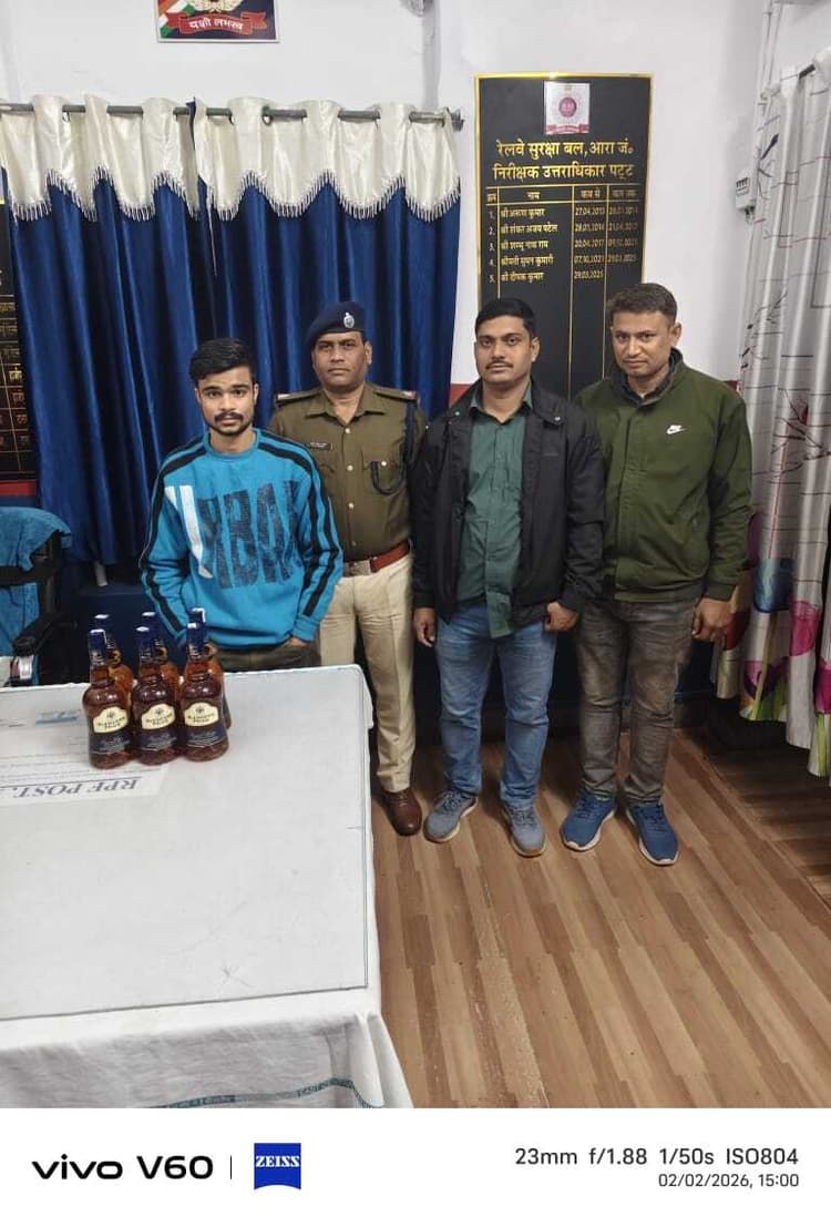 आरा जंक्शन पर छह बोतल विदेशी शराब के साथ तस्कर गिरफ्तार