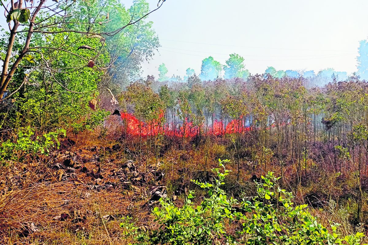 कृषि फाॅर्म के पास खेत में लगी अरहर की फसल में लगी आग