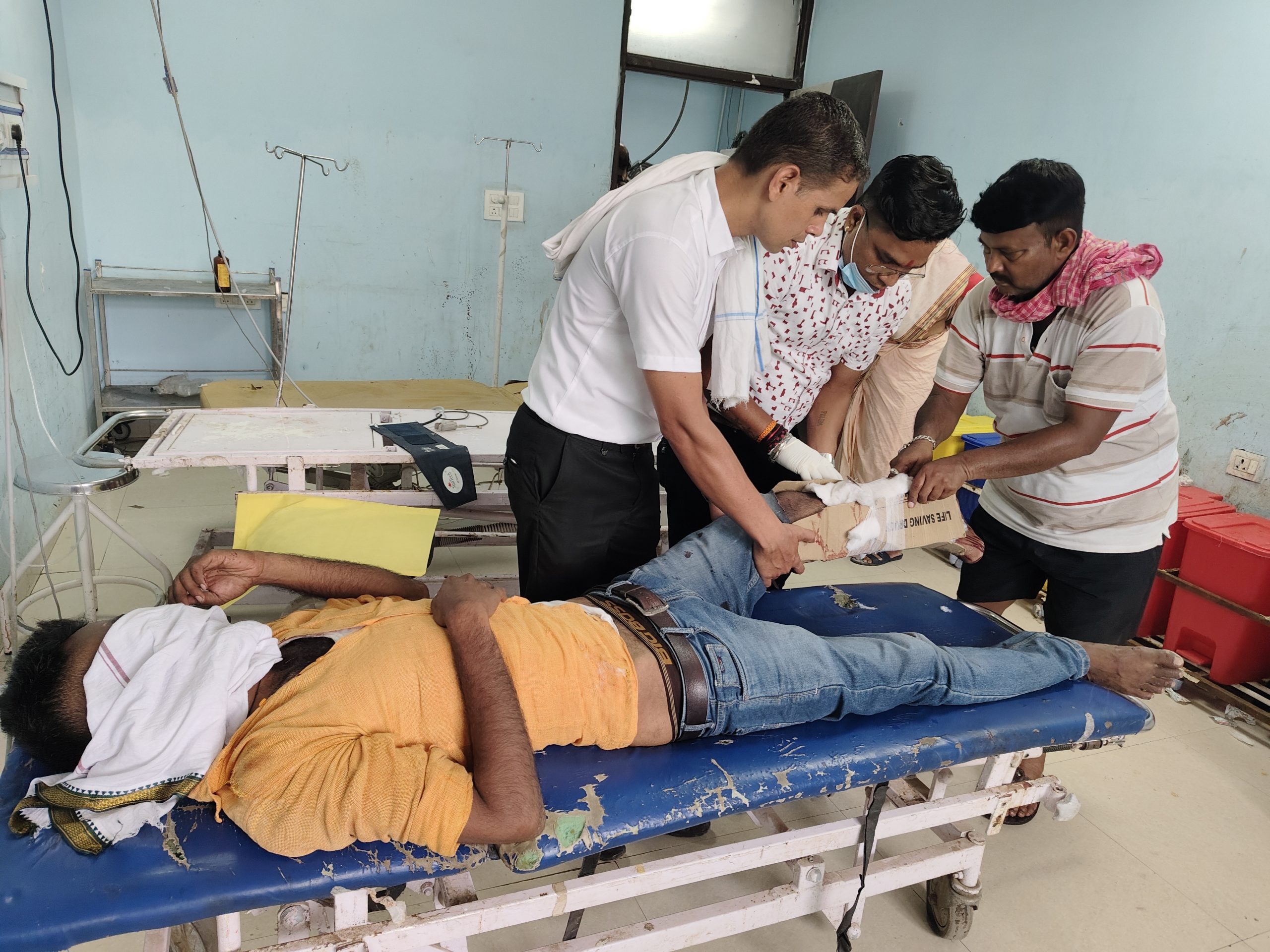 बिहिया थाना क्षेत्र के डाक बंगला चौराहा के समीप रविवार की दोपहर बाइक सवार ने सड़क पार कर रहे युवक को जोरदार टक्कर मार दी, जिससे वह गंभीर रूप से जख्मी हो गया. परिजन द्वारा उसे इलाज के लिए बिहिया सीएचसी से सदर अस्पताल लाया गया. जानकारी के अनुसार जख्मी बिहिया थाना क्षेत्र के साहेब टोला निवासी मो.सलीम का 32 वर्षीय पुत्र मो.असलम है. इधर, जख्मी युवक के परिजन बताया कि रविवार की दोपहर वह अपने घर से डाक बंगला चौराहा के तरफ किसी काम से जा रहा था. इसी क्रम में जब वह डाक बंगला चौराहा पर सड़क पार कर रहा था. तभ बाइक सवार ने उसे जोरदार टक्कर मार दी. जिससे वह गंभीर रूप से जख्मी हो गया. हादसे में जख्मी युवक का बायां पैर फ्रैक्चर कर गया है.डिस्क्लेमर: यह प्रभात खबर समाचार पत्र की ऑटोमेटेड न्यूज फीड है. इसे प्रभात खबर डॉट कॉम की टीम ने संपादित नहीं किया है