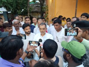 राज्यसभा सांसद उपेंद्र कुशवाहा ने जगदीशपुर प्रखंड के संगम टोला में पत्रकारों से की बात