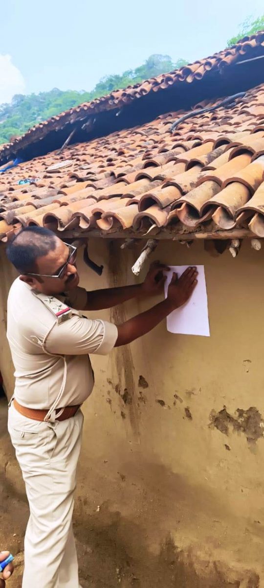 नक्सली कांड में फरार अभियुक्त के घर चिपकाया गया इश्तेहार