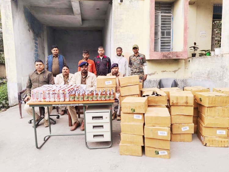 अलग-अलग पेटी में भरी हुई थी 2468 बोतल शराब, तीन गिरफ्तार नवीनगर. नवीनगर-बारुण पथ में खैरा बाजार के समीप एनटीपीसी खैरा थाना की पुलिस ने एक ट्रक से भारी मात्रा में शराब जब्त की है. ट्रक पर रहे चालक सहित तीन धंधेबाज भी पुलिस के हत्थे चढ़ गये. वैसे यह कार्रवाई थानाध्यक्ष परमजीत मंडल के नेतृत्व में की गयी. जपला की ओर से डेहरी तरफ जा रहे एक खाली ट्रक को खैरा बाजार के समीप पुलिस की टीम ने रोककर जांच की. ट्रक का डल्ला खाली था, लेकिन केबिन की गतिविधियां कुछ और बता रही थी. पुलिस ने जब केबिन की जांच की तो शराब की कई पेटियां पायी गयी. केबिन के ऊपरी हिस्से में भी पेटी लादी गयी थी. पुलिस ने इस क्रम में ट्रक चालक रोहतास जिले के नासरीगंज थाना क्षेत्र के नासरीगंज निवासी राजेश सिंह के पुत्र रविरंजन कुमार, अकोढ़ीगोला थाना क्षेत्र के पदुमटोला निवासी कोमल चौधरी के पुत्र पवन कुमार और सरोज चौधरी के पुत्र उमेश कुमार को गिरफ्तार कर लिया. थानाध्यक्ष ने बताया कि एनटीपीसी खैरा थाना क्षेत्र के खैरा बाजार झारखंड निर्मित 500 एमएल का 68 बोतल बियर यानी 34 लीटर तथा 200 एमएल का 60 पेटी में 2400 बोतल यानी 480 लीटर विदेशी शराब जब्त किया गया. 2468 बोतल यानी 514 लीटर शराब जब्त किये गये है. ट्रक और विदेशी शराब को जब्त कर थाना लाया गया है तथा मामले में प्राथमिकी दर्ज कर तीनों धंधेबाजों को जेल भेज दिया गया है. इस कार्रवाई में एएसआई संजय कुमार के अलावा अन्य पुलिस कर्मी शामिल थे.