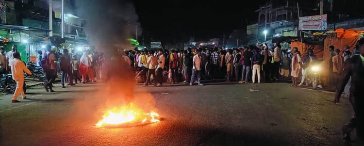 ओबरा. मंगलवार की रात ओबरा थाना क्षेत्र के कुराईपुर गांव के समीप बाइक की टक्कर से एक युवक की मौत हो गयी, जिसकी पहचान नरेश चौधरी के पुत्र नीतीश कुमार के रूप में हुई. घटना के विरोध में आक्रोशित परिजनों और गांव वालों ने ओबरा स्थित सब्जी मंडी के समीप एनएच को जाम कर प्रशासन के खिलाफ नारेबाजी की. टायर जलाकर आगजनी भी की. यूं कहे कि आक्रोशितों की वजह से मुख्य बाजार में अफरा-तफरी की स्थिति रही. पुलिस के खिलाफ जमकर नारे लगे. प्रदर्शन में महिलाएं भी शामिल थी. इधर, आगजनी व प्रदर्शन की सूचना मिलते ही दाउदनगर एसडीपीओ कुमार ऋषिराज, बीडीओ मो यूनुस सलीम, सीओ हरिहरनाथ पाठक, थानाध्यक्ष नीतीश कुमार, ज़म्होर थानाध्यक्ष राजकिशोर प्रसाद दलबल के साथ पहुंचे और लोगों को समझा-बुझाकर शांत कराया. यूं कहे कि लगभग चार घंटे तक एनएच पर आक्रोशितों का आक्रोश नजर आया. आक्रोशित तत्काल दोषी व्यक्ति की गिरफ्तारी की मांग कर रहें थे. इधर, प्रदर्शन की वजह से एनएच पर कई किलोमीटर तक लंबा जाम लग गया. दोनों तरफ के परिचालन बाधित हो गये. लग्न का समय होने के कारण एनएच पर वाहनों की कतार लग गयी. घटना से संबंधित मिली जानकारी के अनुसार सात मई को मृतक नीतीश कुमार एक तिलक समारोह से अपने दो दोस्तों के साथ पैदल घर लौट रहा था. इस दौरान वह अनियंत्रित बाइक की चपेट में आकर घायल हो गया. स्थानीय अस्पताल से उसे रेफर कर दिया गया. जानकारी मिली कि वाराणसी के ट्रॉमा सेंटर में इलाज के दौरान उसकी मौत हो गयी. पोस्टमार्टम के बाद जैसे ही शव घर पहुंचा, वैसे ही परिजन आक्रोशित हो गये और पुलिस प्रशासन से तत्काल कार्रवाई की मांग करते हुए सड़क जाम कर दिया. हालांकि पदाधिकारियों के समझाने व आश्वासन के बाद लोग शांत हुए. थानाध्यक्ष नीतीश कुमार ने बताया कि मामले में एक प्राथमिकी दर्ज की गयी है, जिसमें दो नामजद व एक अज्ञात व्यक्ति को अभियुक्त बनाया गया है. कार्रवाई करते हुए एक बाइक को जब्त कर लिया गया है. आगे की कार्रवाई की जा रही है. इधर, जानकारी मिली कि सरकारी काम में बाधा पहुंचाने व सड़क पर आवागमन को अवरूध करने को लेकर भी एक अलग से प्राथमिकी दर्ज कराने की प्रक्रिया शुरू है.