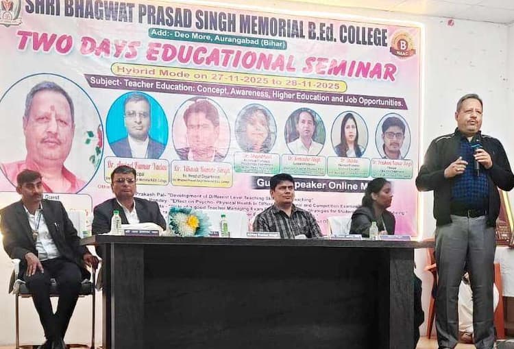 श्री भागवत प्रसाद सिंह मेमोरियल बीएड कॉलेज में दो दिवसीय एजुकेशनल सेमिनार संपन्न औरंगाबाद कार्यालय. देव मोड स्थित श्री भागवत प्रसाद सिंह मेमोरियल बीएड कॉलेज में दो दिवसीय एजुकेशनल सेमिनार संपन्न हो गया. सेमिनार के दूसरे दिन बीएड कॉलेज के प्राचार्य डॉ अरविंद कुमार यादव ने मुख्य अतिथि व श्री भागवत प्रसाद सिंह मेमोरियल ग्रुप ऑफ कॉलेज के निदेशक अभय कुमार सिंह को प्रतीक चिह्न, अंग वस्त्र व बुके देकर सम्मानित किया. श्री सिंह ने कहा कि मानव की ज्ञानेंद्रियां ही उसके ज्ञान का आधार होती हैं. व्यक्ति के शरीर में पांच प्रमुख ज्ञानेंद्रियां आंख, कान, नाक, जिह्वा और त्वचा होती है. आंख से देखते, कान से सुनते, नाक से गंध का, जिह्वा से स्वाद का और त्वचा से कठोर एवं मुलायम वस्तु का अनुभव करते है. यह सभी ज्ञानेंद्रियां सीखने, समझने, चिंतन, सूझबूझ और अनुभव का प्रमुख आधार है. आप जो सोचते हैं वह तभी कर पाते हैं जब आपकी ज्ञानेंद्रियां और कर्मेंद्रियां उसके लिए तैयार हो. हाथ-पैर, मुख, गुदा और उपस्थ पांच कर्मेंद्रियां भी होती है. इनका भी सीखने-सिखाने, खेलने-कूदने, खाने-पीने, भाव-भंगिमा प्रकट करने में महत्वपूर्ण भूमिका होती है. एजुकेशनल सेमिनार के मुख्य वक्ता व गंगा देवी महिला महाविद्यालय पटना की असिस्टेंट प्रोफेसर मनोविज्ञान विभाग डॉ शांभवी ने कहा कि सीखने सिखाने की प्रक्रिया का एक महत्वपूर्ण पक्ष मनोसामाजिक होता है. बच्चों का मानसिक विकास के अंतर्गत चिंतन, मनन, तनाव चिंता आदि प्रभावित करते हैं. सामाजिक विकास की दृष्टि से पारिवारिक वातावरण, पड़ोस का माहौल, खेल के साथी, विद्यालय का वातावरण एवं परिवेश बच्चों को प्रभावित करता है. दूसरे वक्ता स्कूल ऑफ एजुकेशन, उद्योग भारतीय विद्यालय, सूरत (गुजरात) के प्राचार्य प्रशांत कुमार सिंह ने ऑनलाइन सेमिनार को संबोधित करते हुए कहा कि शिक्षा एक सार्वभौमिक प्रक्रिया है. प्रत्येक समय एवं परिस्थिति में किसी न किसी रूप में विद्यमान रहती है. भाषाई दृष्टि से दूसरे राज्यों में शिक्षक बनने के लिए वहां की स्थानीय भाषा सीखना अनिवार्य होता है. यदि उत्तर भारत के हिंदी भाषी क्षेत्र से यदि कोई दक्षिण भारत में शिक्षक बनना चाहता है तो उसके लिए दक्षिण भारत की भाषाएं तमिल, तेलगु, कन्नड़, मलयालम आदि जरुरत के अनुसार सीखना, बोलना और समझना आना चाहिए. इस अवसर पर श्रेया गुप्ता ने मनोवैज्ञानिक पहलू पर, जय प्रकाश पाल ने शिक्षक प्रशिक्षण कौशल पर तथा राम विजय चौरसिया ने शिक्षक शिक्षा के विभिन्न पहलुओं पर विस्तार से जानकारी साझा की. प्रशिक्षु मुकेश कुमार, रिमझिम कुमारी, सोनू कुमार आदि ने एजुकेशनल सेमिनार में अपना पेपर प्रजेंट किया तथा ऐसे प्रशिक्षुओं को सम्मानित किया गया. मंच संचालन ब
