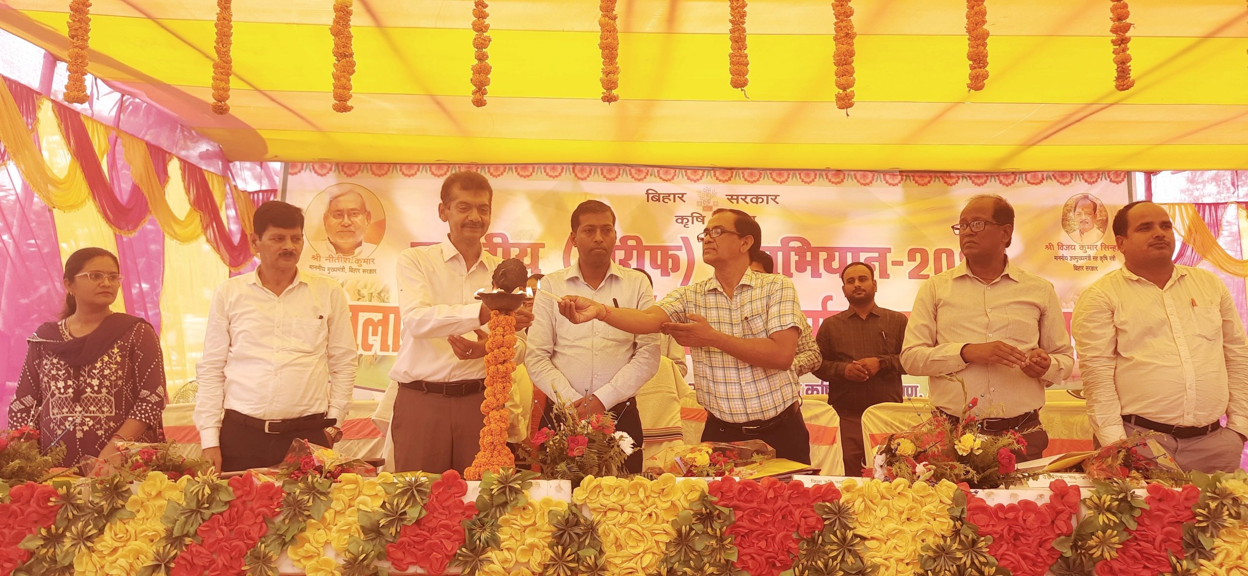 औरंगाबाद शहर. प्रखंड कार्यालय परिसर स्थित संयुक्त कृषि भवन में गुरुवार को जिला स्तरीय शारदीय (खरीफ) महाभियान सह प्रशिक्षण कार्यक्रम 2025-26 का आयोजन किया गया. कार्यक्रम का उद्घाटन अपर समाहर्ता (आपदा), मगध प्रमंडल के संयुक्त कृषि निदेशक (शष्य), जिला कृषि पदाधिकारी सहित अन्य संयुक्त रूप से दीप जलाकर किया. अधिकारियों ने बताया कि शारदीय (खरीफ) महाभियान का मुख्य उद्देश्य खरीफ मौसम में उगाई जाने वाली फसलों की वैज्ञानिक खेती किसान कैसे करें, ताकि फसलों का उत्पादन एवं उत्पादकता बढ़ायी जा सके. जिला कृषि पदाधिकारी रामेश्वर प्रसाद ने बताया कि परंपरागत कृषि के अलावा नयी तकनीक आधारित विशेष फसलों पर खेती करने की आवश्यकता है. इसके अलावा कृषि विभाग द्वारा संचालित विभिन्न योजनाओं में दिये जाने वाले अनुदान एवं प्रत्यक्षण राशि के बारे में जिला कृषि पदाधिकारी ने विस्तार से बताया. कहा कि जिले को वित्तीय वर्ष 2025-26 में प्रधानमंत्री राष्ट्रीय कृषि विकास योजना अन्तर्गत 100 क्विंटल मक्का बीज का भौतिक लक्ष्य प्राप्त है. उक्त योजना अंतर्गत खरीफ मौसम में मक्का के क्षेत्र में विस्तार एवं उत्पादन में वृद्धि के लिए 150 रुपये किलोग्राम या बीज दर का 50 प्रतिशत जो न्यूनतम होगा सहायता दर दिया जायेगा. इसी तरह बेबी कॉर्न का भौतिक लक्ष्य आठ क्विंटल प्राप्त हुआ है. इस कार्यक्रम अंतर्गत 750 रुपये किलोग्राम अथवा 50 प्रतिशत जो कम हो सहायता दर दी जायेगी. साथ ही इस जिले को स्वीट कॉर्न का तीन क्विंटल लक्ष्य प्राप्त हुआ है. इस कार्यक्रम अंतर्गत 2250 रुपये किलोग्राम अथवा 75 प्रतिशत जो कम हो सहायता दर दी जायेगी. इन योजनाओं के क्रियान्वयन से औरंगाबाद जिले के किसानों को मक्का, बेबी कॉर्न एवं स्वीट कॉर्न के उत्पादन में सरकार द्वारा अनुदान राशि उपलब्ध कराये जाने से किसानों को इन फसलों के उत्पादन में वृद्धि करने में मिलेगी. पौधा संरक्षण के सहायक निदेशक द्वारा ड्रोन से कीटनाशी के छिड़काव के बारे में विस्तार से बताया गया और सरकार द्वारा दी जाने वाली अनुदान के बारे में भी बताया.