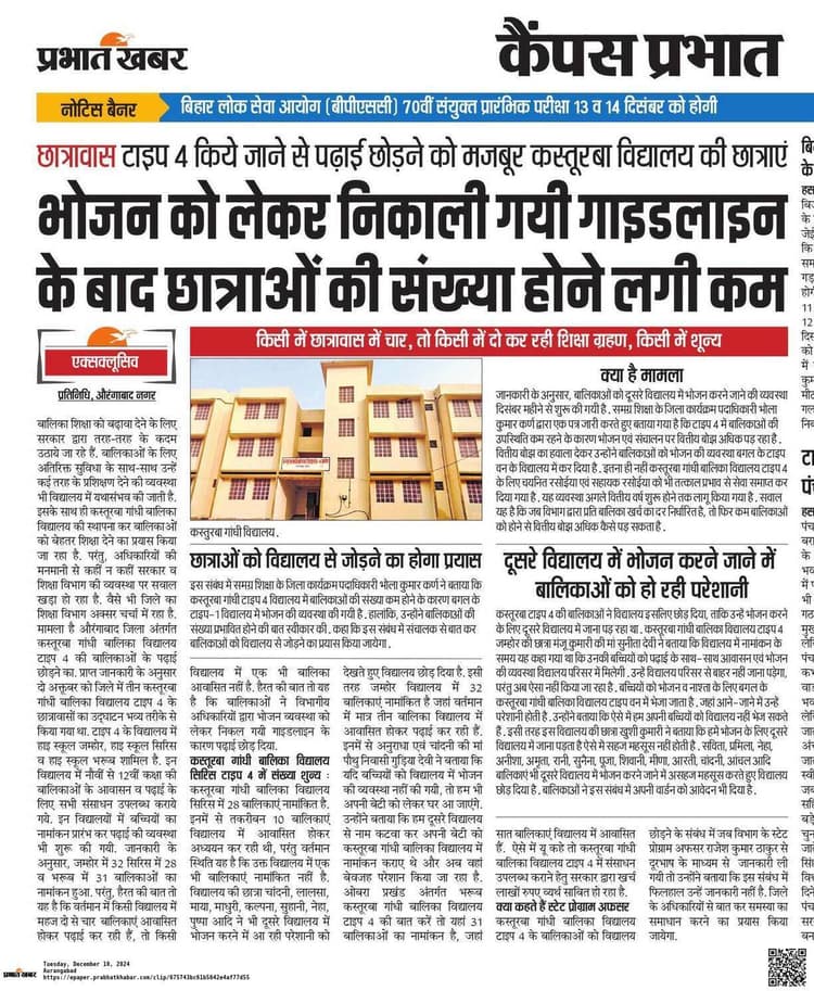 इस बीच प्रभात खबर अखबार द्वारा इस मामले को 10 दिसंबर को गंभीरता से उठाया गया. अखबार में खबर प्रकाशित होते ही शिक्षा विभाग द्वारा एक दूसरा पत्र निर्गत करते हुए एक रसोईया को रखकर टाइप- 4 के विद्यालय में ही भोजन की व्यवस्था शुरू कराई गई है. यह व्यवस्था शुरू होने के बाद अब विद्यालय में बालिकाओं की संख्या बढ़ने लगी है.