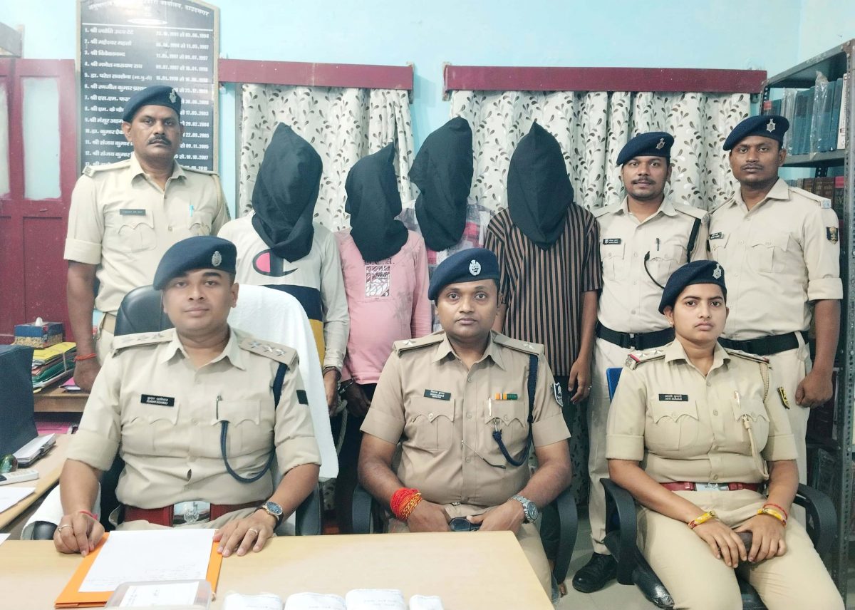प्राप्त जानकारी के अनुसार, पुलिस को सूचना मिली कि अरई-हसपुरा रोड में बल्हमा मोड़ के पास पुड़िया में ब्राउन शुगर रखकर सौ, दो सौ, पांच सौ में बेचा जा रहा है. इसकी सूचना वरीय पदाधिकारी को देते हुए एक टीम का गठन किया गया. सीओ के साथ जब पुलिस की टीम बल्हमा मोड़ के तीन मोहानी से करीब 20 गज दक्षिण पीपल के पेड़ के पास पहुंची, तो पुलिस गाड़ी को देखकर तीन-चार लोग भागने लगे, जिन्हें खदेड़ कर पकड़ लिया गया. धंधेबाजों के पास से 26.87 ग्राम ग्राम ब्राउन शुगर जब्त किया गया. चारों ने पूछताछ में पुलिस को बताया है कि ये सभी संगठन बनाकर ब्राउन शुगर बेचने का कार्य करते हैं. इस संबंध में पीएसआई अभिषेक कुमार ने चारों पर अवैध मादक पदार्थ ब्राउन शुगर बेचने के आरोप में प्राथमिकी दर्ज कराई है.दर्ज प्राथमिकी के अनुसार, पुष्कर के पास से पन्नी में लगभग 18 ग्राम ब्राउन शुगर एवं पैक करने वाला पन्नी, 1650 रुपया नगद व तौलने वाला इलेक्ट्रॉनिक मशीन, रौशन के पास से दो पन्नी में साढ़े छह ग्राम ब्राउन सुगर, अनिल के पास से 31 पुड़िया ब्राउन शुगर बरामद किया गया है, जिसकी कुल मात्रा डेढ़ ग्राम है.भीम के पास से 18 पैकेट ब्राउन शुगर का पुड़िया बरामद किया गया है, जिसकी मात्रा 0.87 ग्राम है. दूसरी ओर, सूत्रों से पता चला कि गिरफ्तार धंधेबाजों द्वारा पूछताछ में कई महत्वपूर्ण खुलासे किए गए हैं, जिस पर पुलिस कार्रवाई एवं छापेमारी कर रही है. थानाध्यक्ष विकास कुमार ने बताया कि एसपी के निर्देशानुसार नशे के पूरे सिंडिकेट को ध्वस्त करने का हर संभव प्रयास किया जा रहा है. इसके लिए पुलिस लगातार प्रयत्नशील है. इसे जड़ से उखाड़ने का प्रयास किया जा रहा है. इसमें आम लोगों का सहयोग भी जरूरी है.इन चारों धंधेबाजों की गिरफ्तारी के बाद पुलिस इनके चेन को खंगालने में लगी हुई है. उन्होंने युवाओं से नशे से दूर रहने की अपील की है.पहले भी हो चुकी है गिरफ्तारी