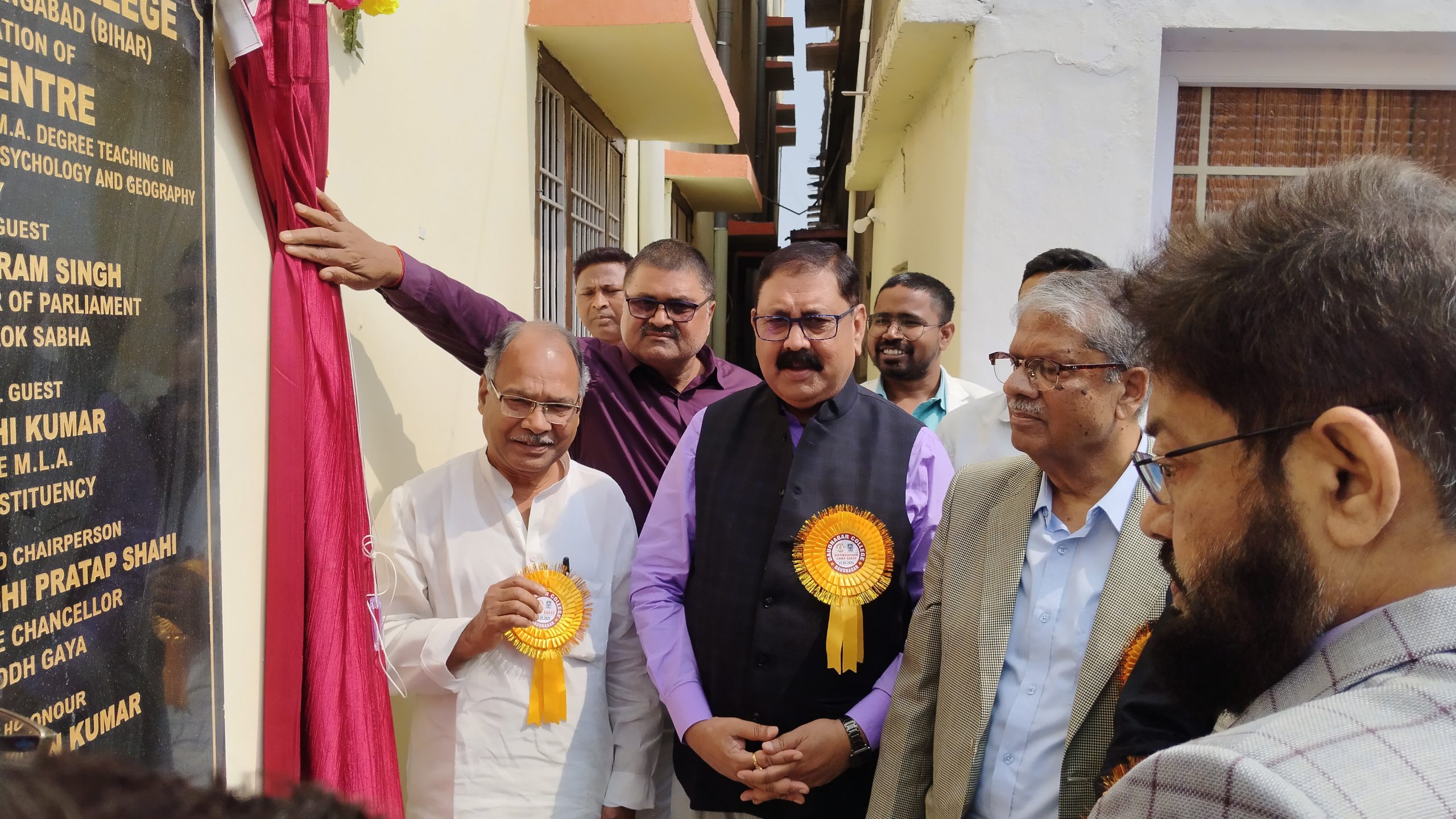 दाउदनगर महाविद्यालय दाउदनगर में पांच विषय में स्नातकोत्तर की पढ़ाई का उद्घाटन किया गया. काराकाट के सांसद राजाराम सिंह, ओबरा के विधायक ऋषि कुमार व मगध विश्वविद्यालय, बोधगया के कुलपति डॉ प्रो शशि प्रताप शाही ने संयुक्त रूप से शिलापट्ट का अनावरण कर पीजी की पढ़ाई का उद्घाटन किया. मौके पर पूर्व कुलपति प्रो डॉ इश्तियाक, रजिस्टार प्रो डॉ विपिन कुमार, प्रॉक्टर प्रो उपेंद्र कुमार आदि गण्यमान्य अतिथि उपस्थित थे. अतिथियों द्वारा कॉलेज परिसर में पौधारोपण किया गया. इसके बाद कॉलेज के प्रेमचंद सभागार में एक कार्यक्रम का आयोजन किया गया, जिसका उद्घाटन अतिथियों द्वारा संयुक्त रूप से दीप प्रज्वलित कर किया गया. कार्यक्रम की शुरुआत कॉलेज के कुल गीत से की गयी. छात्राओं द्वारा स्वागत गीत प्रस्तुत किया गया. काराकाट सांसद राजाराम सिंह ने कहा कि कला के साथ-साथ विज्ञान की पढ़ाई भी होनी चाहिए. कला की जरूरत अभी बढ़ गयी है. इतिहास भूगोल दर्शन इकोनॉमिक्स भाषा का अध्ययन जरूरी हो गया है. श्रम ज्ञान को भी सार्थक बनता है और उसे डेवलप भी करता है. ज्ञान ह्यूमनिटी के डेवलपमेंट के लिए है. आजादी के नेताओं और बाबा साहब डॉ भीमराव आंबेडकर के नेतृत्व में बना संविधान बहुत मजबूत है. जब शिक्षा के लक्ष्य पर बात होगी तो बेसिक्स को मेंटेन रखना होगा. उन्होंने मगध के इतिहास पर चर्चा करते हुए कहा कि 600 वर्ष पुराना मगध का इतिहास है. हमारे इलाके में कृषि के साथ-साथ सभ्यता और संस्कृति विकसित भी है. सोन नहर प्रणाली जीवन रेखा है. उपजाऊ धरती और धरती के नीचे का पानी खत्म नहीं होगा .उन्होंने छात्राओं को शिक्षा के प्रति उत्साहित करने की बात कही.आर्थिक आजादी जरूरी : ऋषि
