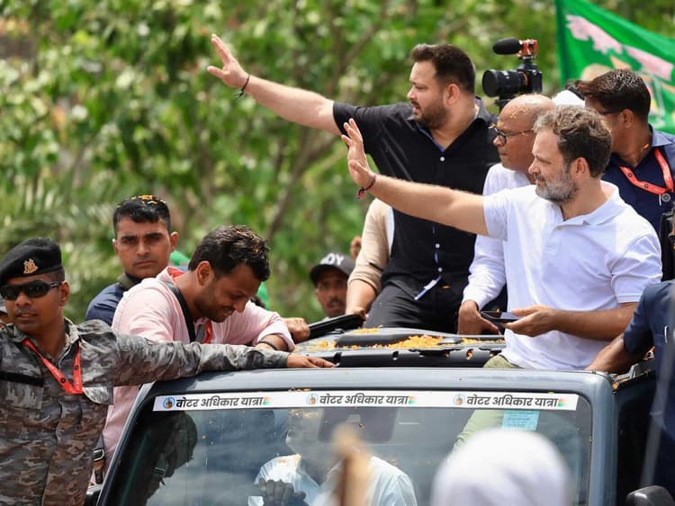 रफीगंज. वोटर अधिकार यात्रा के दूसरे दिन लोकसभा के नेता प्रतिपक्ष व कांग्रेस नेता राहुल गांधी और विधानसभा नेता प्रतिपक्ष तेजस्वी प्रसाद यादव द्वारा रफीगंज शहर में रोड शो किया गया. इसमें वीआईपी के राष्ट्रीय अध्यक्ष मुकेश सहनी व कांग्रेस के प्रदेश अध्यक्ष सह कुटुंबा विधायक राजेश कुमार सहित अन्य वरीय नेता शामिल हुए. प्रखंड क्षेत्र के रेगनियां मोड़, टकरा मोड़, डाकबंगला मोड़, शिवगंज बस स्टैंड, कलाली मोड़, नसरुल मियां मोड़, महाराजगंज मोड़, निचलीडिह चरकावां, गोरडिहा मोड़ सूर्य मंदिर के समीप महागठबंधन के कार्यकर्ताओं द्वारा स्वागत किया गया. स्वागत में रेगनियां ही नहीं शिवगंज से लेकर औरंगाबाद-गयाजी जिले के सीमा क्षेत्र अमवां-सिमवां गांव तक सड़क पर बैनर पोस्टर से जगह-जगह तोरण द्वार बनाये गये थे. वोटर अधिकार यात्रा के क्रम में रोड शो करते हुए राहुल गांधी ने लोगों को वोट चोरी के खिलाफ जागरूक किया. कहा कि भाजपा के इशारे पर चुनाव आयोग द्वारा वोट चोरी किया जा रहा है. मतदाताओं को मतदान से वंचित करने की साजिश रची जा रही है. इधर, रोड शो को लेकर दंडाधिकारी व पुलिस बलों की तैनाती हर चौक-चौराहों पर की गयी थी. कांग्रेस प्रखंड अध्यक्ष सुजीत कुमार सिंह ने बताया कि एक साजिश के तहत मतदाताओं का वोटर लिस्ट से नाम काटा जा रहा है. जो संविधान के विरुद्ध है. पूर्णिया सांसद पप्पू यादव, औरंगाबाद सांसद अभय कुशवाहा, विधायक मो नेहालुद्दीन, सदर एसडीपीओ दो चंदन कुमार, सर्किल इंस्पेक्टर रामजी प्रसाद, थानाध्यक्ष शंभू कुमार, अपर थानाध्यक्ष कन्हैया कुमार, एसआई कुशो कुमार, सोनाली, ध्रुव कुमार, मिथिलेश कुमार, विनोद कुमार, उमेश कुमार, कांग्रेस नेता हस्सान सिद्धिकी, बौर पैक्स अध्यक्ष रामस्वरूप सिंह, चेयरमैन प्रतिनिधि डॉ गुलाम शाहिद, राजद जिला महासचिव रणविजय यादव, राजद प्रदेश सचिव कमलेश यादव, राजद प्रखंड अध्यक्ष विक्की सिंह यादव, पूर्व मुखिया एस शहजादा शाही, वार्ड पार्षद प्रतिनिधि माहिद खान, नगर पार्षद टप्पू यादव, महफूज आलम आदि शामिल थे.
