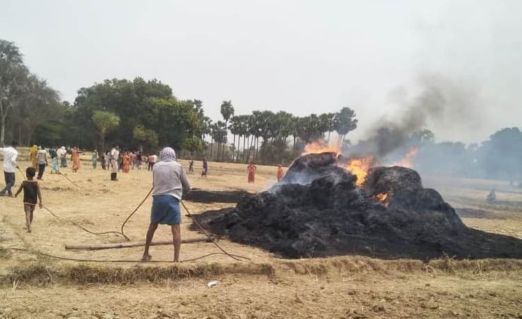 हसपुरा. हसपुरा थाना क्षेत्र के कोईलवां गांव स्थित कब्रिस्तान के समीप किसानों के खलिहान में आग लग गयी. किसान मुकेश मिस्त्री एवं रामाधार ठाकुर का पुआल जल गया. अगलगी की सूचना पर ग्रामीण आग बुझाने के लिए दौड़े, लेकिन वे सफल नहीं हो सके. ग्रामीणों ने आग बुझाने में काफी मशक्कत किया, लेकिन काबू नहीं पाया. इसके बाद अग्निशमन विभाग को सूचना दी गयी. दमकल की टीम पहुंची और घंटों मशक्कत के बाद आग पर काबू पाया गया. अगलगी की घटना से किसानों की परेशानी बढ़ गयी है. व्यापार मंडल अध्यक्ष जयकृष्ण पटेल, समाजसेवी ओमप्रकाश विश्वकर्मा, वैभव पटेल, राजन सिंह आदि ने किसान को आपदा प्रबंधन विभाग व सीओ से सहायता की मांग की है.