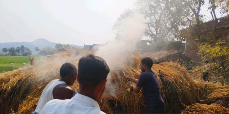 अंबा थाना क्षेत्र के जौड़ा पर गांव के बधार में आग लगने से पुआल जलकर राख हो गया. घटना शनिवार की दोपहर की है. इस घटना में उक्त गांव निवासी गोवर्धन यादव को हजारों रुपये का नुकसान हुआ है. हालांकि, आग कैसे लगी इस संबंध में किसी को कोई स्पष्ट जानकारी नहीं है. प्राप्त जानकारी के अनुसार, वे पशुओं को चारा खिलाने के उद्देश्य से पुआल अपने घर समीप खेत में रखे थे. अचानक आग की लपटें उठने लगी तब शोर शुरू हुआ और ग्रामीण इकट्ठा हुए. ग्रामीणों ने आग पर काबू पाने का काफी प्रयास किया परंतु देखते ही देखते आग की लपटें काफी तेज हो गयी. ग्रामीण जब आग बुझाने में असफल होने लगे तो इसकी जानकारी अंबा पुलिस को फोन पर दी. सूचना मिलने पर फायर ब्रिगेड की टीम गांव में पहुंची. फायर ब्रिगेड की मदद से आग पर काबू पाया गया. ग्रामीणों ने बताया कि समय रहते यदि आग पर काबू नहीं पाया जाता तो आग की लपटें घर तक भी पहुंच सकती थी. ग्रामीणों ने बताया कि गोवर्धन गरीब परिवार से आते हैं. उनका जीवकोपार्जन का जरिया गौ पालन ही है. पुआल जल जाने से पशुओं के चारा की समस्या आ गयी है. थानाध्यक्ष राहुल राज ने बताया कि अभी तक इस मामले में आवेदन प्राप्त नहीं हुआ है. आवेदन के आलोक में आवश्यक कार्रवाई की जाएगी. मुखिया रविंद्र यादव ने कहा कि पीड़ित को प्रावधान के अनुरूप मुआवजा दिलवाने का प्रयास हर संभव किया जायेगा.डिस्क्लेमर: यह प्रभात खबर समाचार पत्र की ऑटोमेटेड न्यूज फीड है. इसे प्रभात खबर डॉट कॉम की टीम ने संपादित नहीं किया है