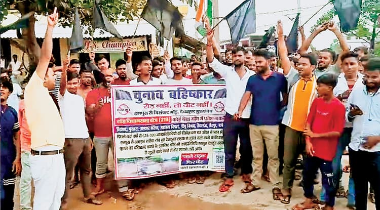 आंदोलन का कारण हसपुरा-देवकुंड रोड का जर्जर होना है. आंदोलन का नेतृत्व कर रहे सुधीर सिंह ने कहा कि यह सड़क हसपुरा और देवकुंड के दर्जनों गांवों के लिए जीवनरेखा की तरह है. देवकुंड और अमझर शरीफ प्रसिद्ध धार्मिक स्थल हैं, जहां लाखों श्रद्धालु आते हैं. इसके बावजूद कई दशकों से सड़क की हालत ऐसी है कि पैदल चलना भी मुश्किल है. एंबुलेंस वाले इस रोड में आने से इंकार कर देते हैं. लोग इस रोड पर सफर से बचने के लिए दुगनी दूरी तय कर आवागमन करते हैं. उन्होंने कहा कि लोगों की सहनशक्ति अब जवाब दे चुकी है और दर्जन भर गांवों ने वोट बहिष्कार का ऐलान कर दिया गया है. साथ ही, यह भी तय किया है कि उन गांवों में किसी नेता को घुसने नहीं देंगे. दर्जन भर गांवों में चुनाव बहिष्कार के बैनर-पोस्टर ग्रामीणों ने लगा रखा है.नारेबाजी करते रहे आंदोलनकारी