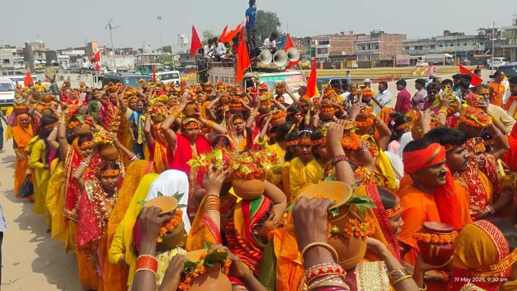 देव. देव प्रखंड अंतर्गत एरौरा पंचायत के सटवट गांव स्थित शिव मंदिर व हनुमान मंदिर परिसर में आयोजित सात दिवसीय शिव परिवार प्राण प्रतिष्ठा सह रुद्र महायज्ञ का आगाज कलश यात्रा के साथ हो गया. सोमवार को गाजे-बाजे के साथ कलश यात्रा निकाली गयी. सटवट सहित आसपास क्षेत्र के हजारों श्रद्धालु इसमें शामिल हुए. 5001 कलश के साथ कलशयात्रा में शामिल कन्याएं व महिलाओं ने भगवान का जयघोष किया. यूं कहे कि सिर पर कलश लिये श्रद्धालु यज्ञ स्थल से जयकारे के बीच पवित्र सूर्यकुंड तालाब पहुंचे, जहां यज्ञाचार्य ने वैदिक विधि-विधान के साथ मंत्रोच्चारण का संकल्प कराया. इसके बाद जलभरी की रस्म पूरी की गयी. पुन: माथे पर कलश लिये श्रद्धालु यज्ञ मंडप पहुंचे और उसे स्थापित किया. यज्ञाचार्य व उपाचार्य ने सोमवार को मंडप प्रवेश, पंचांग पूजन, संध्या आरती व अन्य धार्मिक अनुष्ठान संपन्न कराया. यज्ञाचार्य ने बताया कि जहां इस तरह का धार्मिक अनुष्ठान होता है वहां दैवीय तुल्य स्थान हो जाता है. यज्ञ के दौरान भगवान की कृपा श्रद्धालुओं पर बनी रहती है. यज्ञ समिति के बबलू कुमार सिंह ने बताया कि 19 मई से 25 मई तक संध्या बेला में प्रतिदिन कथा वाचिका सत्यार्चा जी रामकथा सुनायेंगी. 23 मई की सुबह मंदिर में शिव परिवार का प्राण प्रतिष्ठा होगा. पुण्य स्वामी श्री सीताराम शरण जी 20 मई से 25 मई तक प्रतिदिन शाम सात से आठ बजे तक श्रद्धालुओं ऊपर अमृत रूपी प्रवचन की वर्षा करेंगे. स्वामी सत्यप्रकाश जी भी कथावाचक के तौर पर मौजूद रहेंगे. 22 मई को निरंजनी अखाड़ा पीठ के पीठाधीश्वर पुज्य स्वामी श्री कैलाशानन्द गिरि जी आठ बजे से 10 बजे तक भगवान की महिमा का बखान करेंगे. 23 एवं 24 मई को पुज्य ऋतंभरा जी का प्रवचन होगा. 25 मई को जुनागढ़ अखाडा पीठ के स्वामी अखिलेश्वर दास जी भी कथा सुनायेंगे. इसके अलावे 20 मई से 25 मई तक प्रतिदिन सुबह सुन्दरकांड का पाठ होगा.