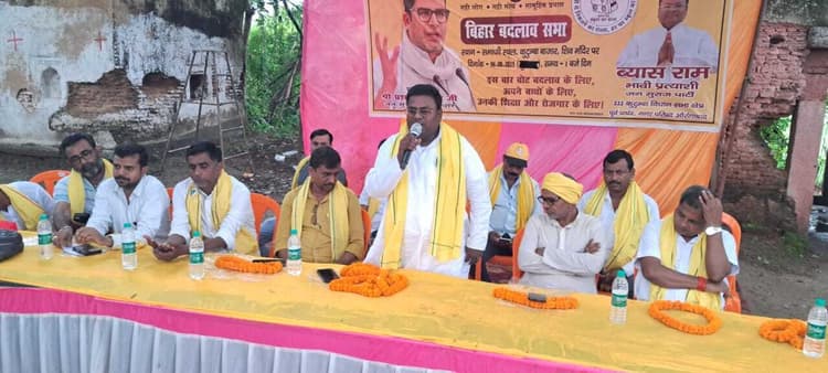 कुटुंबा. पूरब बाजार कुटुंबा के स्थित माधो भारती मठ के मैदान में जन सुराज पार्टी का बिहार बदलाव सभा आयोजित की गयी. पार्टी नेता व्यास राम के नेतृत्व में आयोजित सभा की अध्यक्षता जिलाध्यक्ष सह महुआंव पंचायत के मुखिया बृजमोहन सिंह ने किया. संचालन कुटुंबा प्रखंड चुनाव प्रभारी अधिवक्ता रंजीत कुमार व कुटुंबा प्रखंड अध्यक्ष रणधीर कुमार सिंह ने संयुक्त रूप से की. वक्ताओं ने कहा कि जनसुराज पार्टी के सूत्रधार प्रशांत किशोर के नेतृत्व में बनते ही बिहार से युवाओं का पलायन रुकेगा. सभी युवाओं को राज्य के अंदर ही रोजगार देने की व्यवस्था की जायेगी. मुख्य अतिथि के रूप में प्रमंडलीय चुनाव अभियान समिति सदस्य मो जमील, रमेश सिंह, जिला उपाध्यक्ष डॉ शशिकांत कुमार गौतम आदि ने सभा को संबोधित किया. कहा कि बिहार में भ्रष्टाचार व अपराधिक गतिविधि चरम सीमा पर है. दिसंबर 2025 में जन सुराज पार्टी की सरकार बनते ही युवाओं का पलायन बंद होगा. बिहार में ही 10 -15 हजार रुपए की रोजी रोजगार की गारंटी होगी. बुजुर्गों को 2000 प्रति माह पेंशन व महिलाओं को स्वावलंबी बनने के लिए सस्ते दर पर ऋण उपलब्ध कराया जायेगा. सभा को अभियान समिति के प्रखंड संयोजक पप्पू कुमार सिंह, कुटुंबा प्रखंड युवा अध्यक्ष अमन कुमार सिंह, अमित कार्तिकेय, अशोक पटेल, तुफैल अंसारी, आदि ने भी संबोधित किया. कहा कि गरीबी हटाना, बेरोजगारी खत्म करना तथा आम आवाम को सम्मान जनक जीवन यापन का अधिकार देना पार्टी का मुख्य उद्देश्य है. गरीब, किसान, मजदूर, युवा बेरोजगार सभी महंगाई एवं भ्रष्टाचारी शासन व्यवस्था से ऊब चुके हैं.