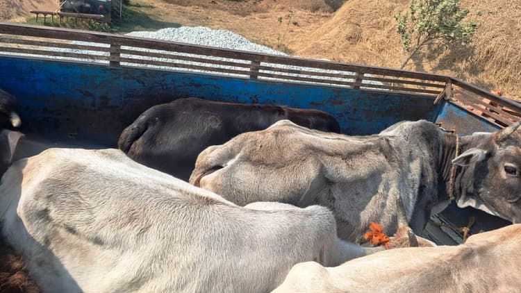 दोनों के पास कोई वैध कागजात नहीं थे,पिकअप का चालक फरार फोटो नंबर-9- जब्त पिकअप में बंधे पशु प्रतिनिधि, नवीनगर. नवीनगर प्रखंड के माली थाना क्षेत्र के माली स्कूल के समीप पुलिस ने गुरुवार को एक पिकअप से आधा दर्जन मवेशी बरामद किये. इस मामले में बारुण थाना क्षेत्र के मुंशी बिगहा गांव निवासी उमेश लाठौर के पुत्र दिवान लाठौर और कैमूर जिले के कुदरा थाना क्षेत्र के मोकर्रत गांव निवासी दीपक लाठौर को हिरासत में लिया गया. जानकारी के अनुसार, माली थाना क्षेत्र के पड़रिया गांव निवासी प्रमोद कुमार के पुत्र विवेक कुमार ने पुलिस को आवेदन देकर शिकायत की कि वह सुबह माली मोड़ के समीप एक चाय की दुकान पर बैठे थे, तभी उन्होंने देखा कि कुछ लोग पिकअप पर बेतरतीब तरीके से मवेशियों को लादकर चतरा-नवीनगर रोड से चरण की ओर जा रहे थे. सभी मवेशियों के पांव बंधे हुए थे. शक के आधार पर पिकअप को माली स्कूल के समीप रोका गया. दिवान लाठौर और दीपक लाठौर से पूछताछ की गयी, लेकिन उन्होंने कुछ भी बताने से इंकार कर दिया. दोनों के पास कोई वैध कागजात भी नहीं थे, जबकि पिकअप का चालक मौके से फरार हो गया. माली थाना पुलिस ने सूचना मिलने के बाद पिकअप को जब्त कर लिया. थानाध्यक्ष दीपक कुमार राय ने बताया कि आवेदन के आधार पर प्राथमिकी दर्ज कर ली गयी है. आरोपितों को न्यायालय में पेश किया जायेगा, जबकि आगे की कार्रवाई जारी है. बरामद मवेशियों को रिसियप थाना क्षेत्र की बभंडीह गौशाला को सुपुर्द कर दिया गया है.