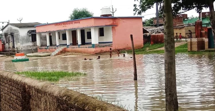 बारिश का मौसम आते ही डरने लगते है बच्चे, दो दिन पहले एक बच्ची को ग्रामीणों ने डूबने से बचाया ओबरा. हाल के दिनों में हुई लगातार बारिश से बहुत से इलाकों में अभी भी जल जमाव है. कई विद्यालय भी जल जमाव की चपेट में है. मध्य विद्यालय बालक रामनगर की स्थिति भयावह है. विद्यालय परिसर में लगभग तीन फीट पानी का जमाव होने के कारण बच्चों को शिक्षा ग्रहण करने में परेशानी हो रही है. इधर जानकारी मिली कि रविवार को विद्यालय बंद के दौरान गांव के रविंद्र पासवान की छह वर्षीय पुत्री परी कुमारी अपने दोस्तों के साथ विद्यालय परिसर में जमे पानी मे खेल रही थी. अचानक वह गड्ढे में चली गयी और डूबने लगी. बच्चों के शोरगुल करने के बाद कुछ ग्रामीण पहुंचे और बच्ची को बचाया. इसी से समझा जा सकता है कि जल जमाव कितना खतरनाक हो गया है. विद्यालय परिसर में पानी का जमाव होने से शिक्षक भी परेशान है. विद्यालय के तीन तरफ से चहारदीवारी का निर्माण कराया गया है लेकिन एक तरफ चहारदीवारी नहीं होने के कारण शरारती तत्व के लोग भी विद्यालय परिसर में अक्सर पहुंचते रहे है. विद्यालय परिसर में मिट्टी भरने के लिए प्रधानाध्यापक अजीत कुमार सिंह द्वारा एक वर्ष पूर्व ओबरा बीआरसी कार्यालय में पत्र के माध्यम से ध्यान आकृष्ट कराया गया था लेकिन विभाग के संबंधित पदाधिकारी इस मामले में पहल नहीं कर सके. बारिश होने के बाद विद्यालय में अत्यधिक जल जमाव हो जाता है. बच्चों को दुर्घटना का भय बन जाता है. ग्रामीण भोला यादव, पिंटू पासवान, मुकेश कुमार, राहुल कुमार, सुभाष भगत ने बताया कि रामनगर विद्यालय परिसर में जल जमाव होने के कारण अगल-बगल रहने वाले लोगों को भी परेशानी हो रही है. इधर, इस संबंध में प्रभारी प्रखंड शिक्षा पदाधिकारी जूही कुमारी ने बताया कि इस तरह का मामला उनके संज्ञान में नहीं है. मामले की गंभीरता पूर्वक जांच कर आगे की कार्रवाई की जायेगी. डीजल पंप चलकर पानी की निकासी कराने का प्रयास किया जायेगा.