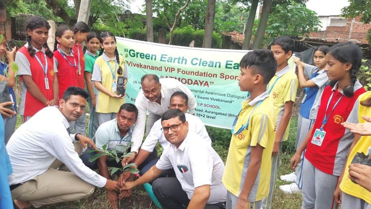 पर्यावरण पर संवाद का आयोजन औरंगाबाद नगर. शनिवार को विवेकानंद विजन आइडियल पब्लिक स्कूल के बच्चों ने आत्मोदय अभियान के तहत हैबसपुर, सरंगा, चरण, महदेवा आदि जगहों पर पौधारोपण कर उपस्थित लोगों के साथ पर्यावरण संरक्षण, प्रदूषण, मृदा संरक्षण, स्वच्छता, स्वास्थ्य, जल संरक्षण आदि मुद्दों पर संवाद स्थापित कर उन्हें इनके प्रति जागरूक किया. चरण के उच्च विद्यालय परिसर में प्रभारी प्रधानाचार्य धर्मराज कुमार द्वारा पौधारोपण किया गया. प्रभारी ने बच्चों के इस कार्य की प्रशंसा करते हुए कहा कि यह एक सामाजिक कार्य है. उन्होंने उपस्थित बच्चों के साथ पर्यावरण संरक्षण पर संवाद किया और उन्हें प्रेरित किया. इस अवसर पर विद्यालय के शिक्षक वसीम अहमद, मनोज मिश्रा, अभिषेक कुमार उपस्थित रहे. वहींए सरंगा में आम जनता के साथ विविआइपीएन्स ने पौधारोपण पर उनके साथ पर्यावरण विषयक संवाद किया. चरण गांव में डॉ अशोक कुमार सिंह, अशोक मिश्र, नागेंद्र सिंह की अगुआयी में पौधारोपण हुआ. महदेवा मंदिर परिसर में संजय सिंह, मंटू सिंह, शैलेश सिंह की देखरेख में यह कार्यक्रम कराया गया. यहां भी छात्रों ने उपस्थित ग्रामीणों के साथ संवाद स्थापित पर पर्यावरण के प्रति जागरूकता फैलायी. पौधारोपण कर बच्चों को पर्यावरण संरक्षण की दिशा में पहल करने के लिए हर्ष जताया. इस कार्य के लिए विद्यालय प्रबंधन का आभार जताया. टीम में शिक्षक अविनाश कुमार, अमरेंद्र कुमार मिश्रा शामिल रहे. विवेकानंद ग्रुप ऑफ इंस्टीट्यूट्स के निदेशक डॉ शंभूशरण सिंह ने बताया कि आत्मोदय अभियान के तहत बच्चे समाज से सीधे जुड़कर पर्यावरण, स्वास्थ्य, प्रदूषण, स्वच्छता, जल संकट आदि विषयों पर लोगों से बात करते हैं. चेयरमैन मनीष वत्स ने बताया कि यह कार्यक्रम विवेकानंद परिवार द्वारा विगत 27 वर्षों से विवेकानंद की पुण्यस्मृति में किया जाता रहा है. इस अभियान के तहत समाज को पर्यावरण के प्रति जागरूक करने तथा एक हजार पौधा लगाने का लक्ष्य पूरा किया गया .