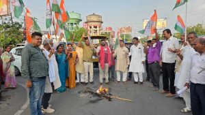 सरकार के खिलाफ कांग्रेस का हल्ला बोल, सीएम का फूंका पुतला