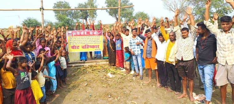 प्रतिनिधि, ओबरा . ओबरा प्रखंड के महुआंव टोला महेशपुर के ग्रामीणों के वोट बहिष्कार का आंदोलन जारी है. दरअसल सड़क व पुल की मांग पर ग्रामीणों ने रविवार को 15वें दिन भी नारेबाजी करते हुए आक्रोश जताया. ग्रामीणों ने स्पष्ट कहा कि जब तक पुल का निर्माण नहीं होगा, तब तक वे वोट बहिष्कार करते रहेंगे. बता दें कि आपसी विचार-विमर्श के बाद एकजुट ग्रामीण महुआंव गांव से महेशपुर टोला तक पुनपुन नदी पर पुल और नारायणपुर-महेशपुर व कनौखर-महेशपुर तक सड़क निर्माण की मांग कर रहे हैं. रविवार को भी ग्रामीणों ने वोट बहिष्कार की नारेबाजी के साथ आक्रोश जताया. पुल व रोड नहीं तो वोट नहीं के बैनर भी लगाया गया.साथ ही स्थानीय जनप्रतिनिधियों और अधिकारियों के विरुद्ध जमकर नारेबाजी की गयी. ग्रामीणों का कहना है कि पुल निर्माण को लेकर कई बार जनप्रतिनिधियों से लेकर अधिकारियों तक ध्यान आकृष्ट कराया गया, लेकिन सुनवाई नहीं हुई. काराकाट के पूर्व सांसद महाबली सिंह ने पुल निर्माण का आश्वासन भी दिया था, लेकिन उनकी घोषणा सिर्फ आश्वासन तक ही सिमट कर रह गयी. ग्रामीणों ने कहा कि किसी भी जनप्रतिधि या स्थानीय पदाधिकारी द्वारा इस मामले में कोई पहल नहीं की जा रही है, जिसे लेकर हम सभी वोट बहिष्कार पर अड़े हैं. पूर्व मुखिया चंद्रशेखर सिंह, वार्ड सदस्य अरुण कुमार सिंह, मोतीलाल चौधरी, मधेश्वर सिंह, अलख साव, लोकनाथ कुमार, लवकेश कुमार, संतोष चौधरी, पिंटू कुमार, सवित्री देवी, अनिता देवी, रिंकु देवी, शारदा देवी, मुन्नी देवी, सीता देवी, आशा देवी, संगीता देवी, सविता देवी आदि ग्रामीणों ने कहा कि उनकी मांगे जायज हैं और वे लेकर रहेंगे.
