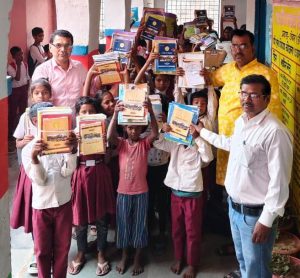 मध्य विद्यालय महथू में छात्रों के बीच पुस्तक का वितरण