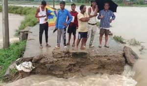 पानी की तेज धार में बही हरी बिगहा सड़क, देव में बाढ़ जैसे हालात