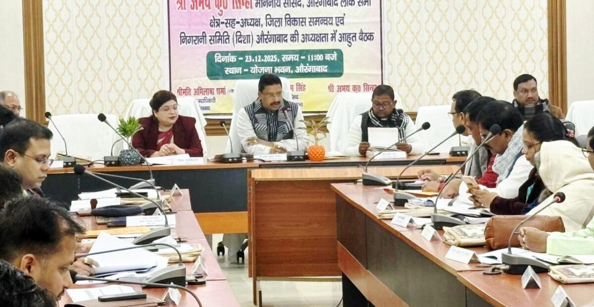 औरंगाबाद शहर. जिला विकास समन्वय एवं निगरानी समिति (दिशा) की बैठक में पूरे जिले के चहुंमुखी विकास पर जोर दिया गया. बैठक में विभिन्न क्षेत्रों में विकास कार्यों की गहन समीक्षा करते हुए योजनाओं के प्रभावी क्रियान्वयन की बात कही गयी. कलेक्ट्रेट स्थित योजना भवन सभागार में आयोजित बैठक की अध्यक्षता सांसद सह दिशा समिति के अध्यक्ष अभय कुमार सिन्हा ने की. बैठक में काराकाट सांसद राजाराम सिंह, जिले के सभी विधायक, जिला पर्षद अध्यक्ष एवं दिशा समिति के अन्य सदस्य शामिल हुए. बैठक की शुरुआत डीएम अभिलाषा शर्मा ने सभी जनप्रतिनिधियों का पौधा भेंट कर स्वागत करने से हुई. बैठक के दौरान जिले के विभिन्न विभागों द्वारा संचालित विकासात्मक योजनाओं और कार्यों की विस्तृत समीक्षा की गयी. समीक्षा के क्रम में कृषि, राजस्व, स्वास्थ्य, शिक्षा, पथ निर्माण, मनरेगा, आवास, पेंशन, खाद्य आपूर्ति सहित अन्य महत्वपूर्ण विभागों से संबंधित योजनाओं पर विस्तार से चर्चा हुई. डीडीसी अनन्या सिंह ने पीपीटी प्रस्तुतीकरण के माध्यम से विभागवार एजेंडा और प्रगति की जानकारी अध्यक्ष को दी. शिक्षा विभाग की समीक्षा के दौरान मध्याह्न भोजन योजना के संचालन, रसोइयों के मानदेय भुगतान, पीएम पोषण योजना के क्रियान्वयन और पोस्ट मैट्रिक छात्रवृत्ति की प्रगति पर चर्चा की गयी. इस दौरान अध्यक्ष ने पहले समीपवर्ती विद्यालयों में मर्ज किये गये स्कूलों की स्थिति की जानकारी मांगी और डीइओ को मर्जर विद्यालयों की पूरी सूची उपलब्ध कराने का निर्देश दिया. काराकाट सांसद राजाराम सिंह ने कहा कि विद्यालयों का मर्जर किसी समस्या का स्थायी समाधान नहीं है, बल्कि इसे अंतिम विकल्प के रूप में ही अपनाया जाना चाहिए. उन्होंने सुझाव दिया कि जिन गांवों में भूमि उपलब्ध है, वहां नये विद्यालयों का निर्माण कराया जाये. उन्होंने गैनी प्रखंड के सिंहपुर गांव में भूमि उपलब्ध होने की जानकारी देते हुए वहां विद्यालय निर्माण कराने का आग्रह किया. वहीं गोह विधायक अमरेंद्र कुशवाहा ने गोह प्रखंड के अमारी में उच्च विद्यालय निर्माण कराने की मांग रखी.माली-कुटुंबा पथ के अधूरे निर्माण की होगी जांच