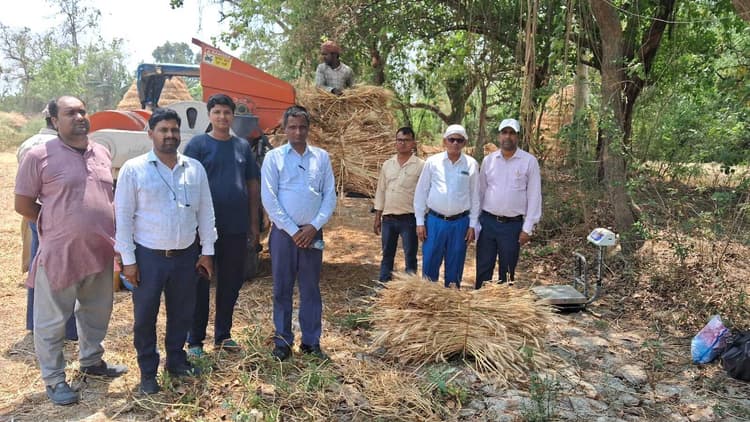 बिहार सरकार के सीसीइ एग्री एप के माध्यम से बिहार राज्य फसल सहायता योजना अंतर्गत पंचायत स्तरीय फसल कटनी प्रयोग का निरीक्षण किया गया. मगध प्रमंडल के उप निदेशक (सांख्यिकी) उपेंद कुमार ने फेसर पंचायत के बसडीहा कला गांव में फसल कटनी प्रयोग का निरीक्षण किया. बसडीहा कला गांव के किसान मिथिलेश सिंह के खेत पर गेहूं की फसल कटनी प्रयोग किसान सलाहकार दीपक कुमार ने किया. प्रयोग के दौरान वैज्ञानिक विधि से निर्धारित प्रक्रिया के माध्यम से दस गुना पांच वर्ग मीटर में मिथिलेश सिंह के खेत में गेहूं फसल का हरा दाना वजन 15.580 किलो ग्राम अर्थात 31.16 क्विंटल प्रति हेक्टेयर या 12.46 क्विंटल प्रति एकड़ ग्राम प्राप्त हुआ. प्रयोग के दौरान जिला सांख्यिकी पदाधिकारी, सहायक सांख्यिकी पदाधिकारी मोती कुमार दिनकर, प्रखंड सांख्यिकी पदाधिकारी धर्मेंद्र कुमार सिंह, जितेंद्र कुमार के अलावा अन्य किसान व ग्रामीण शामिल थे.डिस्क्लेमर: यह प्रभात खबर समाचार पत्र की ऑटोमेटेड न्यूज फीड है. इसे प्रभात खबर डॉट कॉम की टीम ने संपादित नहीं किया है