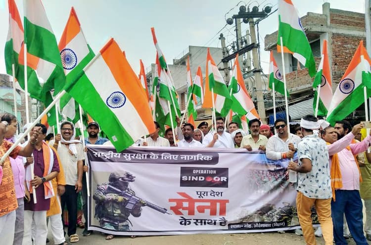 गोह. गोह प्रखंड मुख्यालय में शुक्रवार को ऑपरेशन सिंदूर की ऐतिहासिक सफलता के उपलक्ष्य में तिरंगा यात्रा निकाली गयी. तिरंगा यात्रा का उद्देश्य वीर सैनिकों को सम्मान देना और राष्ट्रप्रेम की भावना को जन-जन तक पहुंचाना था. यात्रा में हजारों की संख्या में लोगों ने हिस्सा लिया, जिससे पूरा गोह क्षेत्र देशभक्ति के नारों से गूंज उठा. तिरंगा यात्रा की शुरुआत एसबीआइ गोह से की गयी जो गोह चौक, मुख्य बाजार होते हुए कॉपरेटिव बैंक गोह तक गयी. तिरंगा यात्रा में भारतीय जनता पार्टी के पूर्व विधायक एवं प्रदेश प्रवक्ता मनोज शर्मा, उपहारा मंडल भाजपा अध्यक्ष राजीव कुमार विद्यार्थी, गोह मंडल अध्यक्ष उमेश पासवान, जिला मंत्री सुनील शर्मा, जिला उपाध्यक्ष दीपक उपाध्याय, विकू त्रिपाठी, सत्येंद्र शर्मा, अरुणजय शर्मा, बृजकिशोर पाल, कमलेश सिंह, गया ठाकुर, नीरज शर्मा, विनोद शर्मा, बैजू ठाकुर, सुरेंद्र शर्मा, हीरा मोती, बब्लू सिंह, देवेश शर्मा, रणधीर पासवान समेत कई प्रमुख नेता शामिल हुए. तिरंगा यात्रा में राजनीतिक दलों से इतर अन्य संगठनों ने भी बढ़-चढ़कर हिस्सा लिया. लोजपा अध्यक्ष कुमार आर्य, जदयू अध्यक्ष कुंजन सिंह, सुभाष वर्मा, ब्रजेश गुप्ता, महिला प्रतिनिधि सोनी देवी, निजू कुमारी, संगीता देवी, रेशमी देवी सहित कई सामाजिक कार्यकर्ताओं की सक्रिय उपस्थिति रही. इस यात्रा की विशेष बात यह रही कि केवीएम क्लासेज के सैकड़ों बच्चों ने भी तिरंगा लहराते हुए यात्रा में भाग लिया, जो नई पीढ़ी में देशभक्ति और सेना के प्रति सम्मान की भावना को दर्शाता है. वक्ताओं ने ऑपरेशन सिंदूर की सफलता को भारतीय सेना की वीरता और रणनीतिक कौशल का प्रतीक बताया तथा जवानों को देश की असली ताकत करार दिया. इधर, तिरंगा यात्रा को देखते हुए शहर में सुरक्षा के पुख्ता इंतजाम किये गये थे.