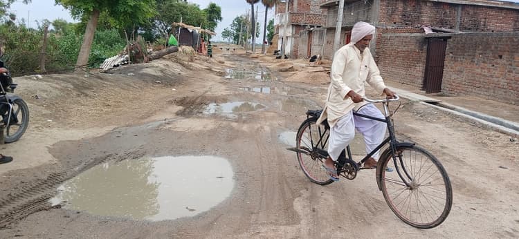 मुख्य सड़क पर जगह-जगह जलजमाव, ग्रामीण बोले- गिनती नहीं गड्ढों की
