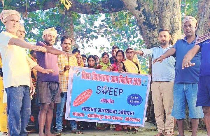 इब्राहिमपुर पंचायत के भुइयां बिगहा महादलित टोला में मतदाता जागरूकता अभियान चलाया गया. इस अभियान का उद्देश्य समाज के अंतिम व्यक्ति तक मतदान के महत्व को पहुंचाना और सभी को लोकतंत्र के इस महापर्व में सक्रिय भागीदारी के लिए प्रेरित करना था. कार्यक्रम के दौरान अधिकारियों व स्थानीय प्रतिनिधियों ने उपस्थित ग्रामीणों से संवाद किया और उन्हें बताया कि मतदान न केवल हमारा अधिकार है, बल्कि यह हमारी जिम्मेदारी भी है. स्थानीय महिलाओं, युवाओं एवं अन्य लोगों ने बढ़-चढ़कर भाग लिया. सभी ने 11 नवंबर को मतदान केंद्र पहुंचकर अपने मताधिकार का प्रयोग करने का संकल्प लिया. वैसे नुक्कड़ नाटक, समूह चर्चा एवं हस्ताक्षर अभियान के माध्यम से लोगों को मतदान के प्रति जागरूक किया गया.डिस्क्लेमर: यह प्रभात खबर समाचार पत्र की ऑटोमेटेड न्यूज फीड है. इसे प्रभात खबर डॉट कॉम की टीम ने संपादित नहीं किया है