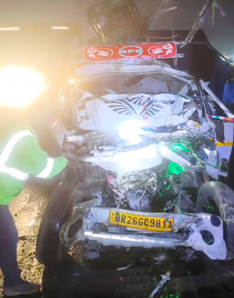 सासाराम शहर के बाराडीह लश्करीगंज के रहने वाले थे दोनों पिकअप पर मछली लोड कर हजारीबाग से सासाराम जा रहे थे बारुण. राष्ट्रीय राजमार्ग 19 पर बारुण थाना क्षेत्र के जोगिया गांव के समीप सड़क हादसे में दो सगे भाइयों की मौत हो गयी. दोनों मछली कारोबारी थे. इनकी पहचान मो इम्तियाज राइन और मो इश्तेयाक राइन के रूप में हुई है. दोनों रोहतास जिले के सासाराम शहर के बाराडीह लश्करीगंज के रहने वाले थे. यह घटना शनिवार की अहले सुबह करीब तीन बजे हुई है. जानकारी के अनुसार, दोनों व्यवसायी पिकअप पर मछली लोड कर हजारीबाग से सासाराम जा रहे थे. जैसे ही पिकअप जोगिया गांव के समीप पहुंचा कि आगे रहे एक टेलर से टकरा गया. लोगों का कहना है कि टेलर के चालक द्वारा अचानक ब्रेक लगाये जाने के बाद दोनों वाहनों के बीच टक्कर हुई. वैसे पुलिस का मानना है कि आगे खड़े ट्रक टेलर से पिकअप की टक्कर हुई है. यह दुर्घटना इतनी भयावह थी कि पिकअप पर सवार दोनों भाइयों की मौके पर ही मौत हो गयी. साथ ही गाड़ी के परखच्चे उड़ गये है. इधर, घटना की सूचना मिलते ही बारुण थाने की पुलिस पहुंची और शवों को कब्जे में लेकर पोस्टमार्टम के लिए सदर अस्पताल भेज दिया. मृतक के भाई मुमताज राइन ने पुलिस को दिये बयान में बताया कि दुर्घटना टेलर चालक की लापरवाही के कारण हुई है. इस संबंध में थानाध्यक्ष रंजीत कुमार ने बताया कि दुर्घटना में शामिल टेलर को जब्त कर लिया गया है और मामले में कार्रवाई की जा रही है. ज्ञात हो कि ठंड के इस मौसम में हाइवे कोहरे की चपेट में है. अहले सुबह जिस वक्त घटना हुई उस वक्त कोहरा गिर रहा था. संभावना जतायी जा रही है कि कोहरे की वजह से दोनों वाहनों की टक्कर हुई. बहरहाल पुलिस मामले की छानबीन कर रही है.