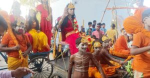 मदनपुर के खिरियावां में शुक्रवार को मानव घाट धार्मिक न्यास समिति की ओर से अखंड हरी कीर्तन के समापन पर शोभायात्रा निकाली गयी. अखंड हरी कीर्तन का समापन आचार्य अरविंद पांडेय, राघवेंद्राचार्य व बैकुंठ दास जी महाराज के मंत्रोच्चारण के साथ किया गया. शोभायात्रा के उपरांत भंडारे का आयोजन मानव घाट पर किया गया. शोभायात्रा की शुरुआत मानव घाट से की गयी, जिसमें समिति के सदस्यों ने प्रभु श्रीराम, लक्ष्मण, माता सीता, श्रवण कुमार आदि देवी-देवताओं की वेश में झांकी की प्रस्तुति दी. यह शोभायात्रा खिरियावां बाजार, राम मंदिर, सतबहिनी, पड़रिया मोड़, बेरी कलाली होते पुनः मानव घाट पर समापन हुई. इस दौरान उदय शिकारी, राजेश साव, विपिन कुमार, गुड्डू चौधरी, महेश कुमार, श्रवण निषाद, धीरू कुमार, प्रिंस कुमार आदि सहित अन्य लोग उपस्थित रहे....